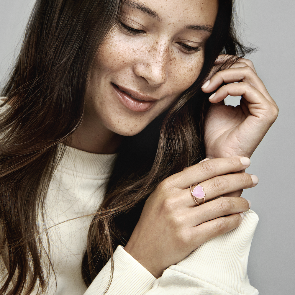 Кольцо «Розовое сердце» в ювелирном сплаве Pandora Rose — воплощение нежности. Нанесенная вручную эмаль сделает его прекрасным дополнением к вашим серебряным украшениям Pandora.
