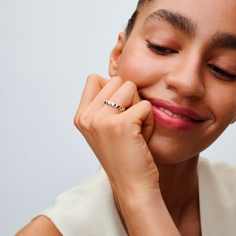 Лучшая идея для подарка – наше кольцо «Ряд сердец» с покрытием из серебра 925 пробы. Искусно выполненное в виде сердец кольцо одинаково красиво смотрится как отдельно, так и в сочетании с контрастными кольцами Pandora. Подарите его как значимый способ выразить свою любовь или побалуйте себя вещью, которую вы будете с удовольствием носить снова и снова.