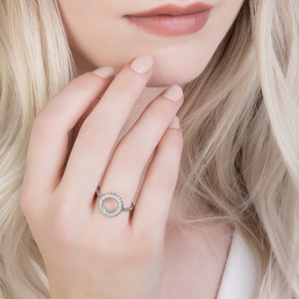 Кольцо из стерлингового серебра с блестящими камнями обладает универсальным дизайном и подходит практически для любого стиля - от винтажного до абстрактного, благодаря тонким изящным деталям, гладкой форме и резным сердцам.