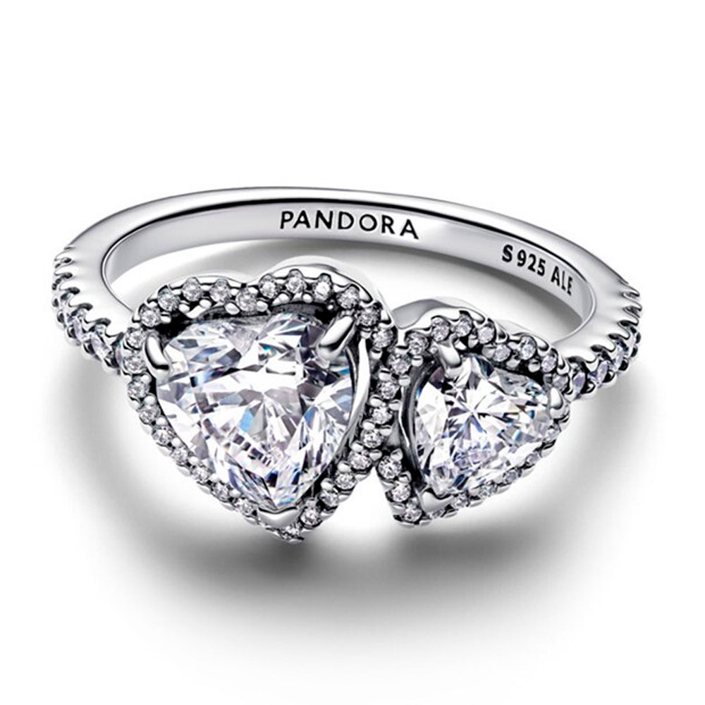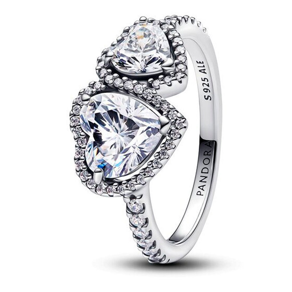 Удивительный символ любви. Это кольцо демонстрирует два сердечка с прозрачными камнями кубического оксида циркония, объединенные сияющим ореолом паве. Изготовленная из серебра 925 пробы, верхняя часть шинки кольца украшена дополнительными блестящими камнями, создавая невероятный эффект сияния. Вдохновленное любовью, которая нас объединяет, это кольцо с двумя сердцами символизирует гармонию и несокрушимую поддержку между двумя душами. Сочетайте его с другими серебряными кольцами для стильного многослойного образа или носите как самостоятельный акцент.