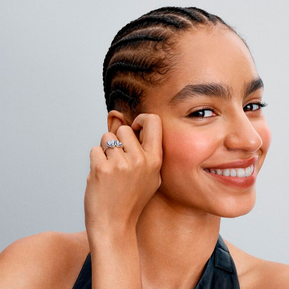 Удивительный символ любви. Это кольцо демонстрирует два сердечка с прозрачными камнями кубического оксида циркония, объединенные сияющим ореолом паве. Изготовленная из серебра 925 пробы, верхняя часть шинки кольца украшена дополнительными блестящими камнями, создавая невероятный эффект сияния. Вдохновленное любовью, которая нас объединяет, это кольцо с двумя сердцами символизирует гармонию и несокрушимую поддержку между двумя душами. Сочетайте его с другими серебряными кольцами для стильного многослойного образа или носите как самостоятельный акцент.