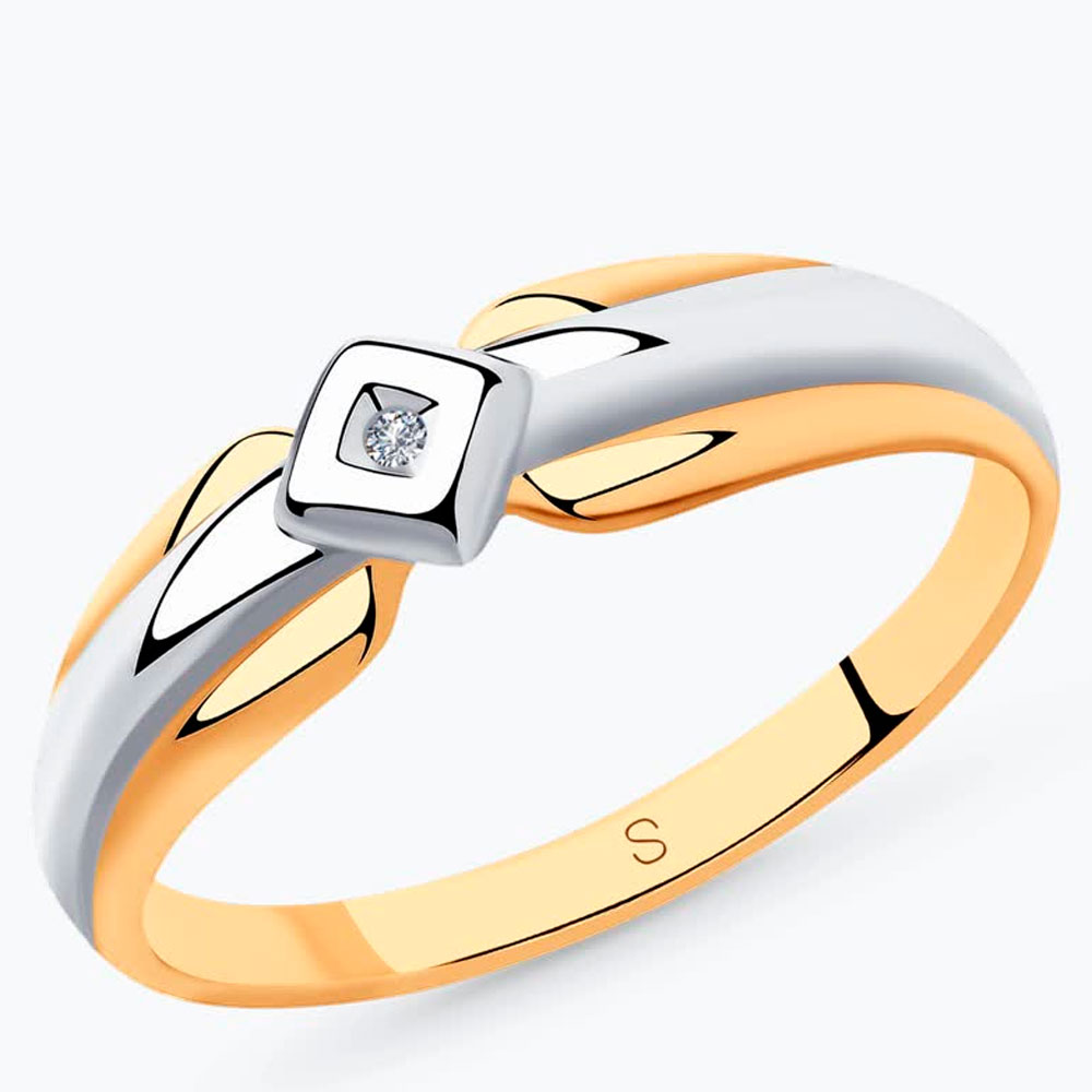 Элегантное кольцо из золочёного серебра с бриллиантом – классика в оригинальном исполнении. Особенность модели заключается в эффектном контрасте двух полярно разных оттенков металла и фигурной объёмной шинке, которая как будто приподнимает каст в форме ромба, акцентируя внимание на сиянии камня. Идеальный вариант для тех, кто ищет классическое кольцо по привлекательной цене, или первый бриллиант в качестве подарка.