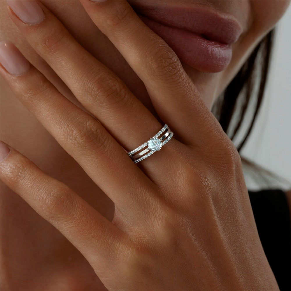 Размер: 54 / 17, Вставка: Фианит, Материал: Серебро, Вид дизайна: Дизайнерское, Комплект: Одно кольцо