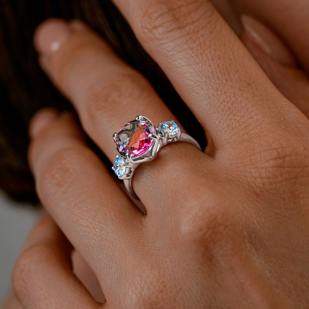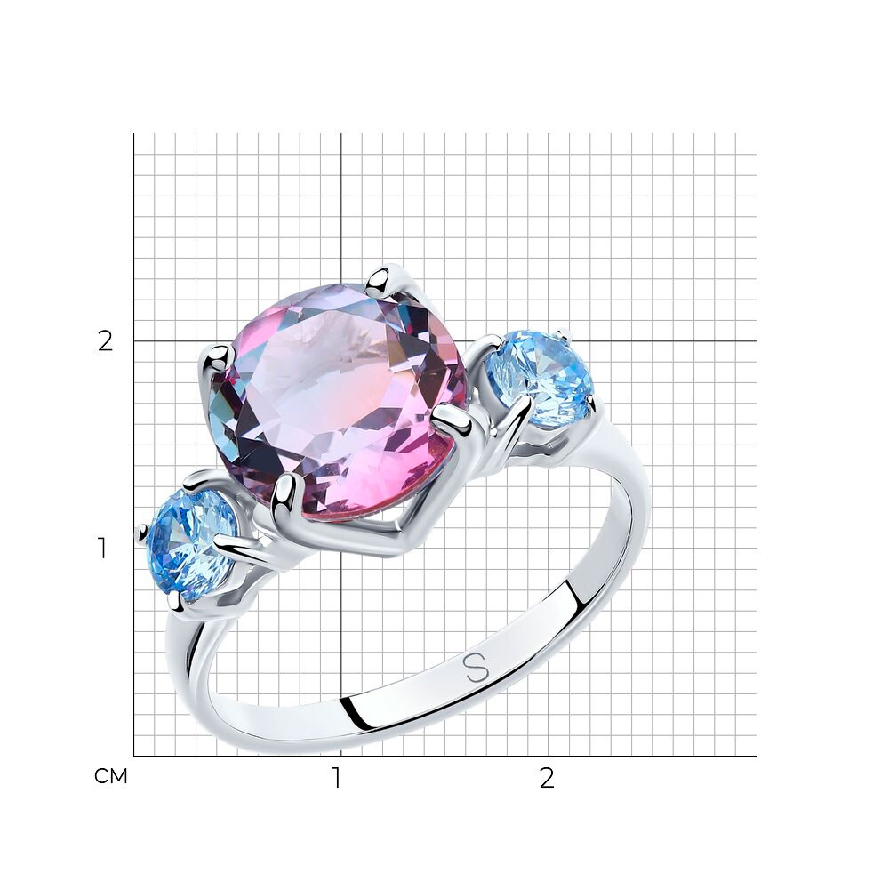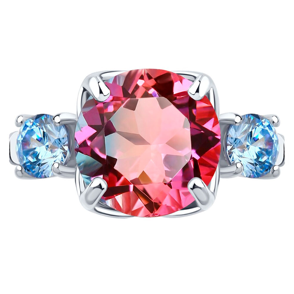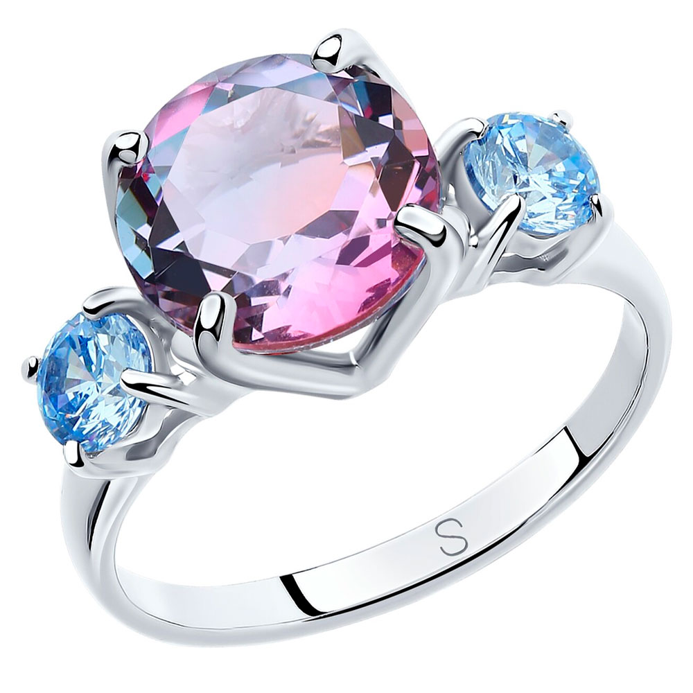 Кольцом из серебра с ситаллом и фианитами, как рассветное небо, переливается множеством оттенков. Сочетание розового ситалла с голубыми фианитами создаёт уникальную игру цвета. Добавьте красок в свой образ и купите кольцо с эффектным декорированием по привлекательной цене.