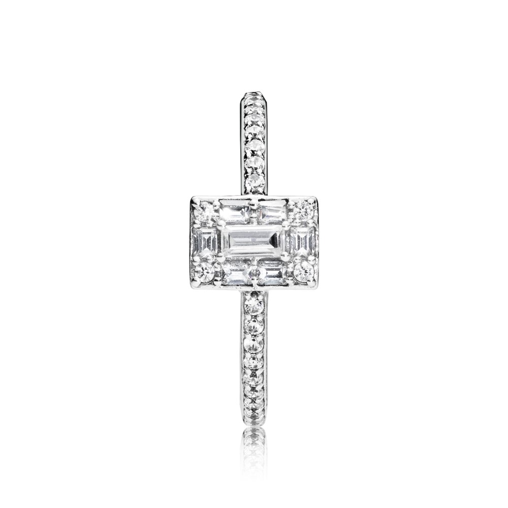 Серебряное кольцо классического дизайна, увенчанное кубическими циркониями огранки "Багет"