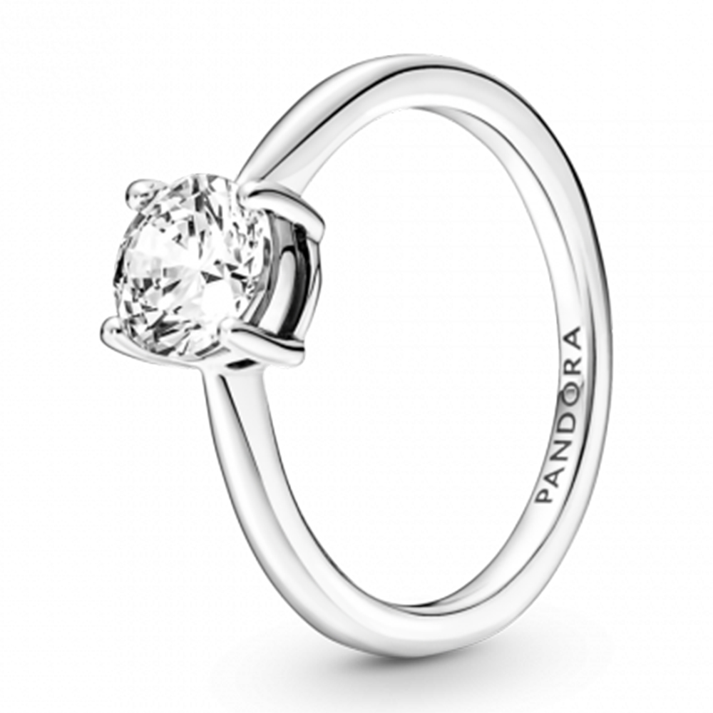 Кольцо из стерлингового серебра с прозрачным камнем кубического циркония бриллиантовой огранки. Вечная классика, которая всегда остается в моде.