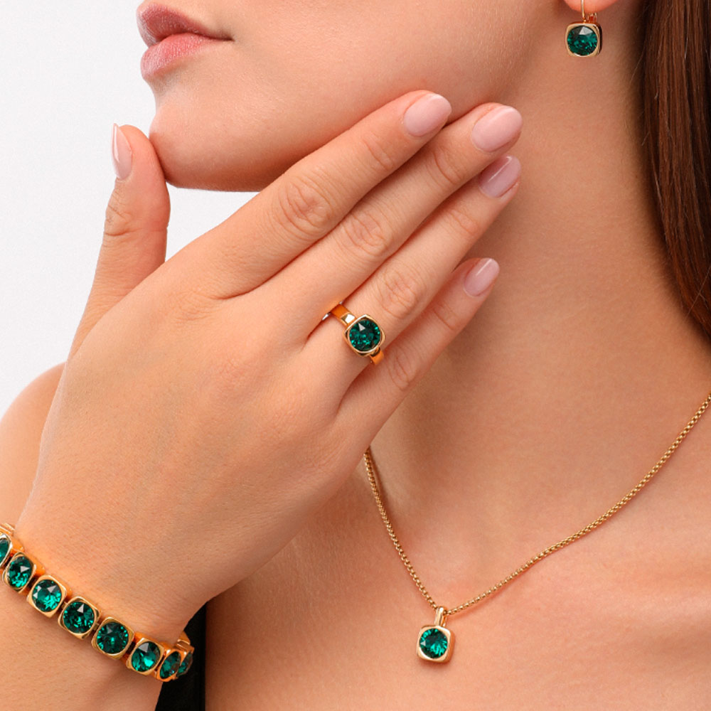 Изделие украшают кристаллы SW темно-зеленого цвета диаметром 8мм.