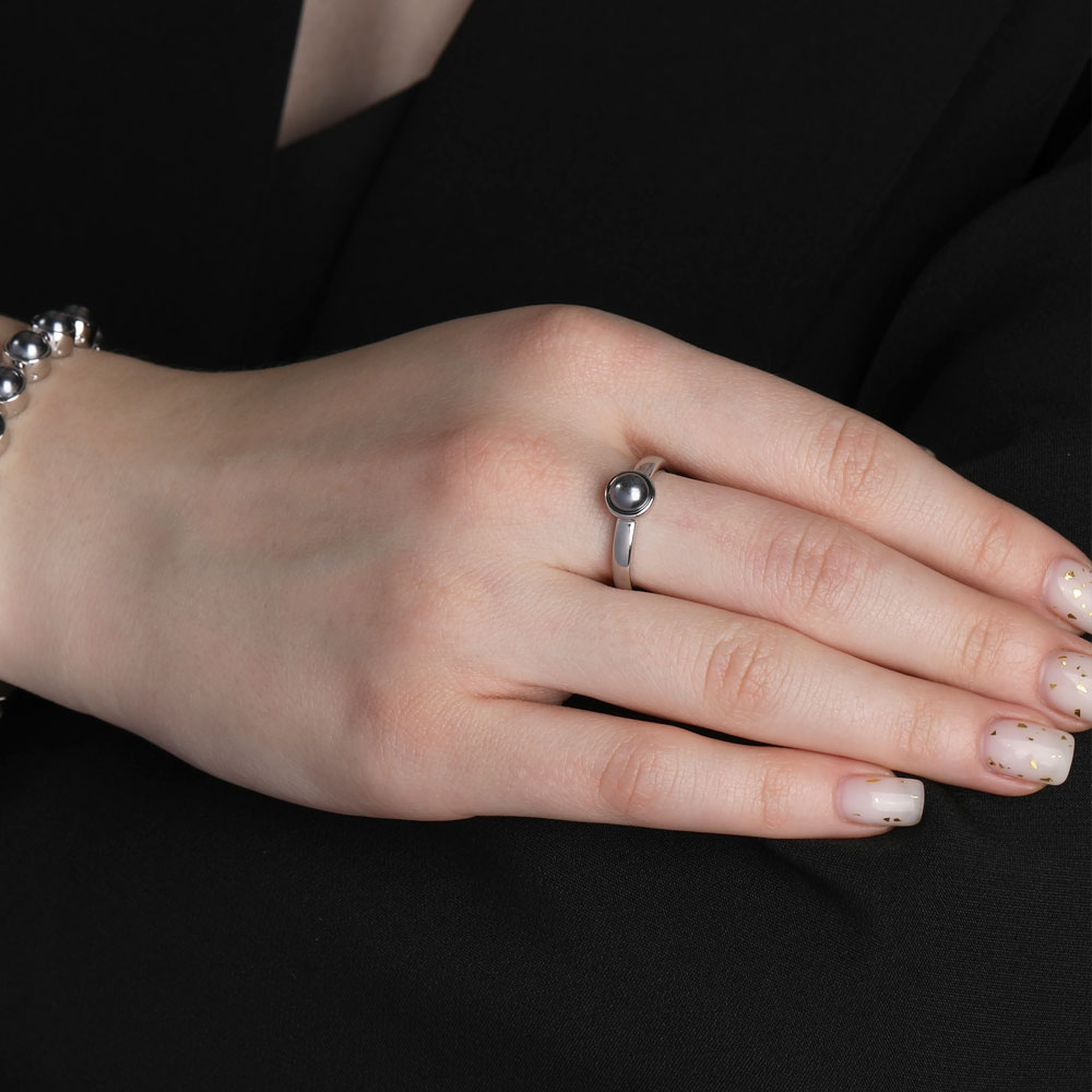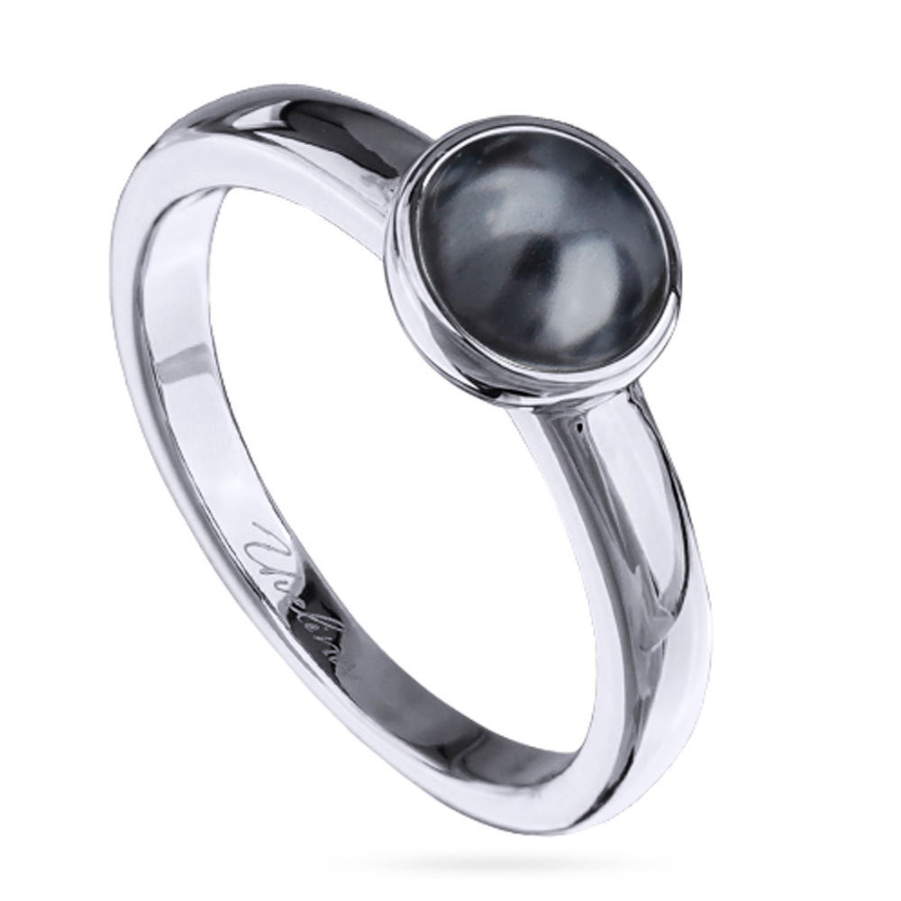 Описание: Изготовлено из ювелирного сплава на основе латуни с гальваническим покрытием родием. Изделие украшает жемчуг Майорка диаметром 6мм темно-серого цвета.