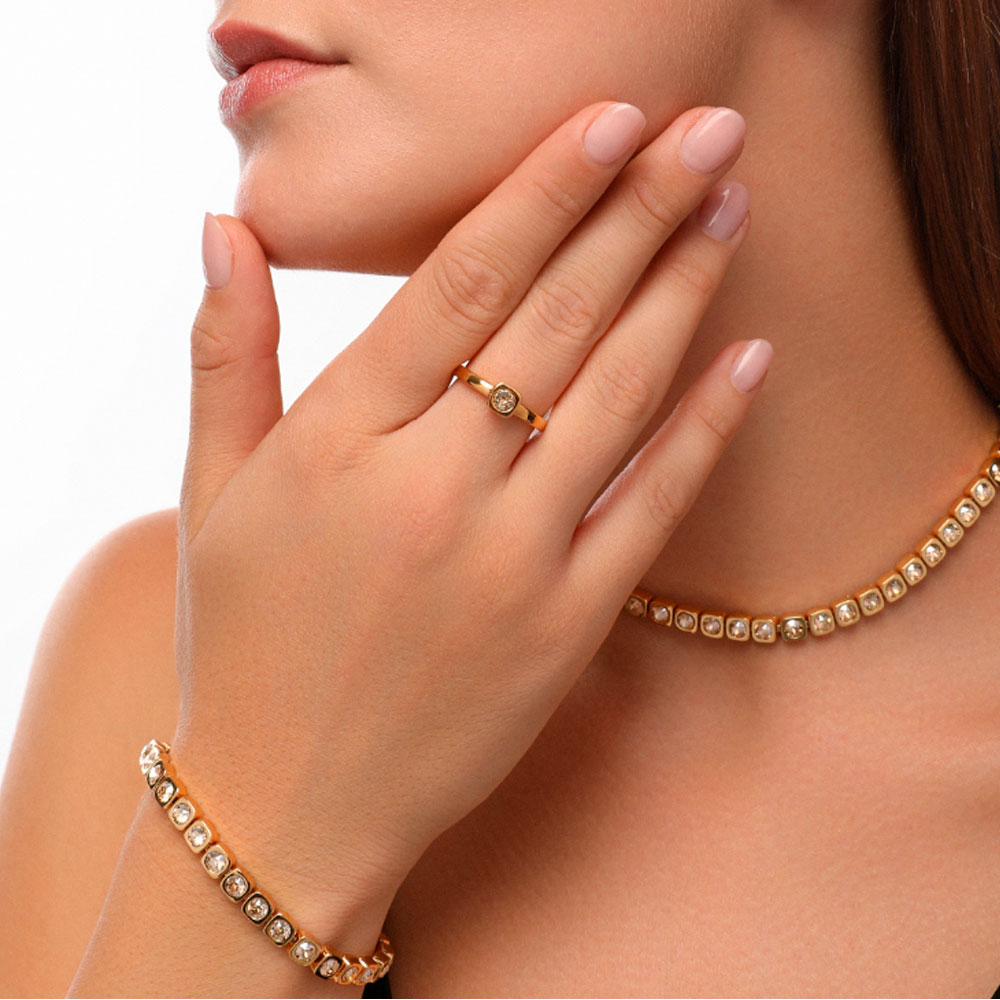 покрытием золотом. Изделие украшают кристаллы SW цвета шампань диаметром 4мм.