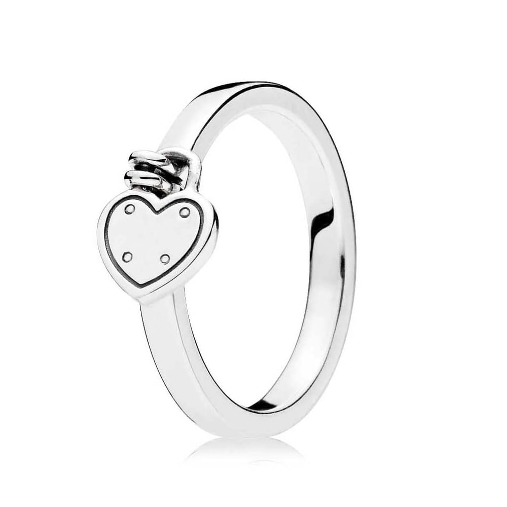 Обещание вечной любви воплотилось в гладком кольце из серебра 925 пробы, украшенном замочком в форме сердца с логотипом PANDORA.
