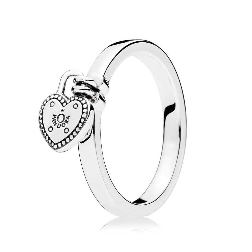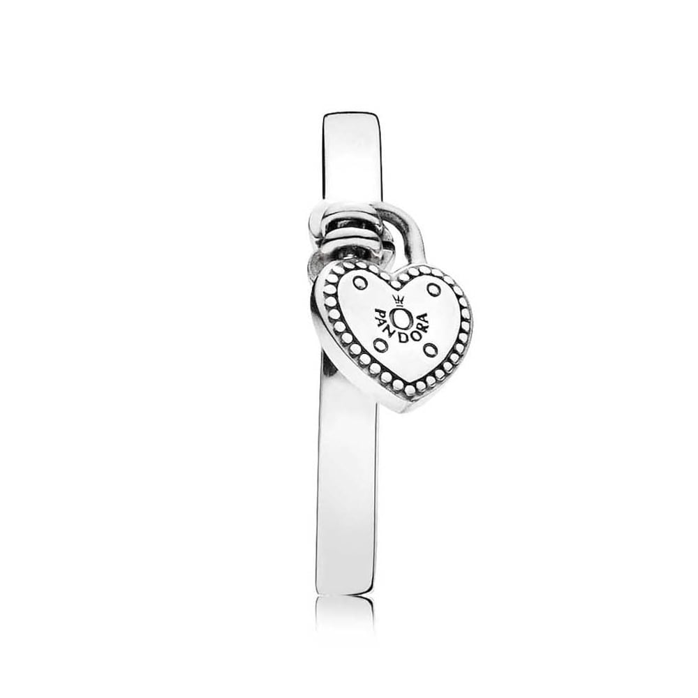 Обещание вечной любви воплотилось в гладком кольце из серебра 925 пробы, украшенном замочком в форме сердца с логотипом PANDORA.