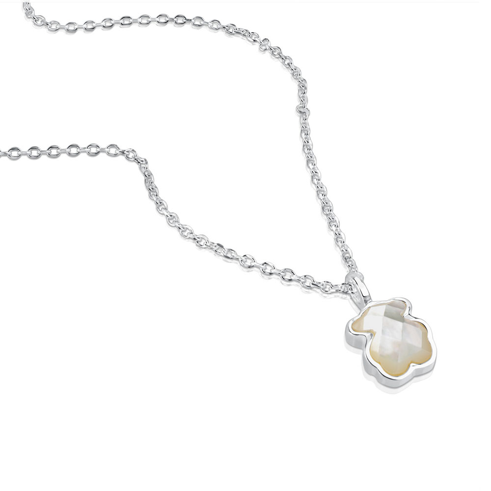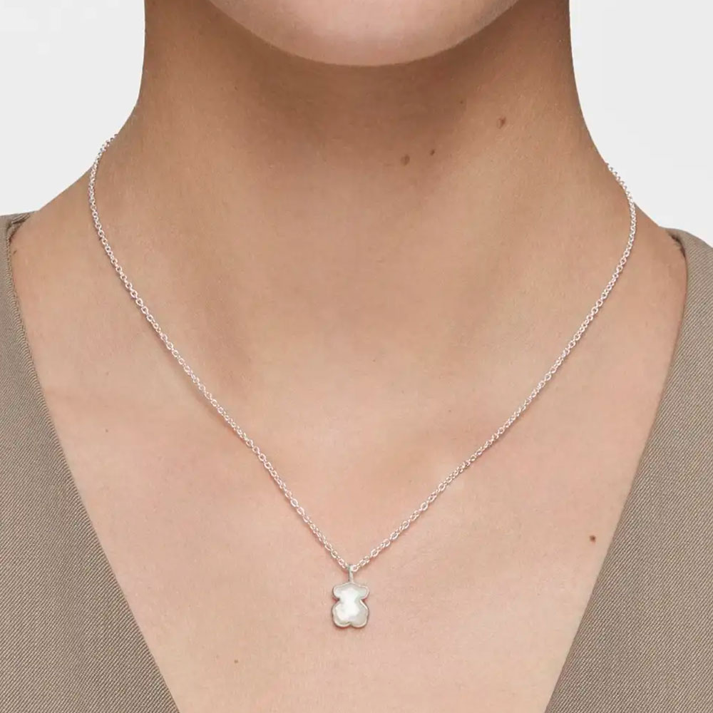 Элегантная, уникальная и волшебная линия шеи. На ней выигрышно смотрится этот неброский, простой чокер из серебра с ограненным перламутром. Вам удалось создать желаемый образ. Особенный. Изысканный. Ожерелье TOUS Bear из серебра высшей пробы, граненый перламутр. Длина: 45 см.