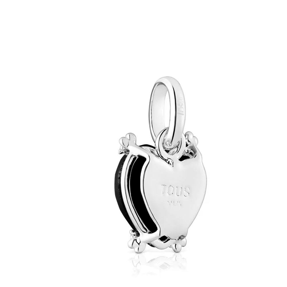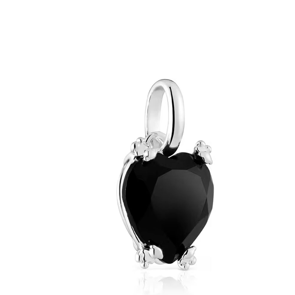 Подвеска TOUS Color Pills из стерлингового серебра с граненым ониксом в форме сердца. Драгоценный камень заключен в когти в форме медведя . Размер драгоценного камня: 10,2 х 9,8 мм. Этот товар не включает цепочку.