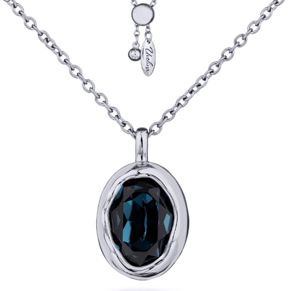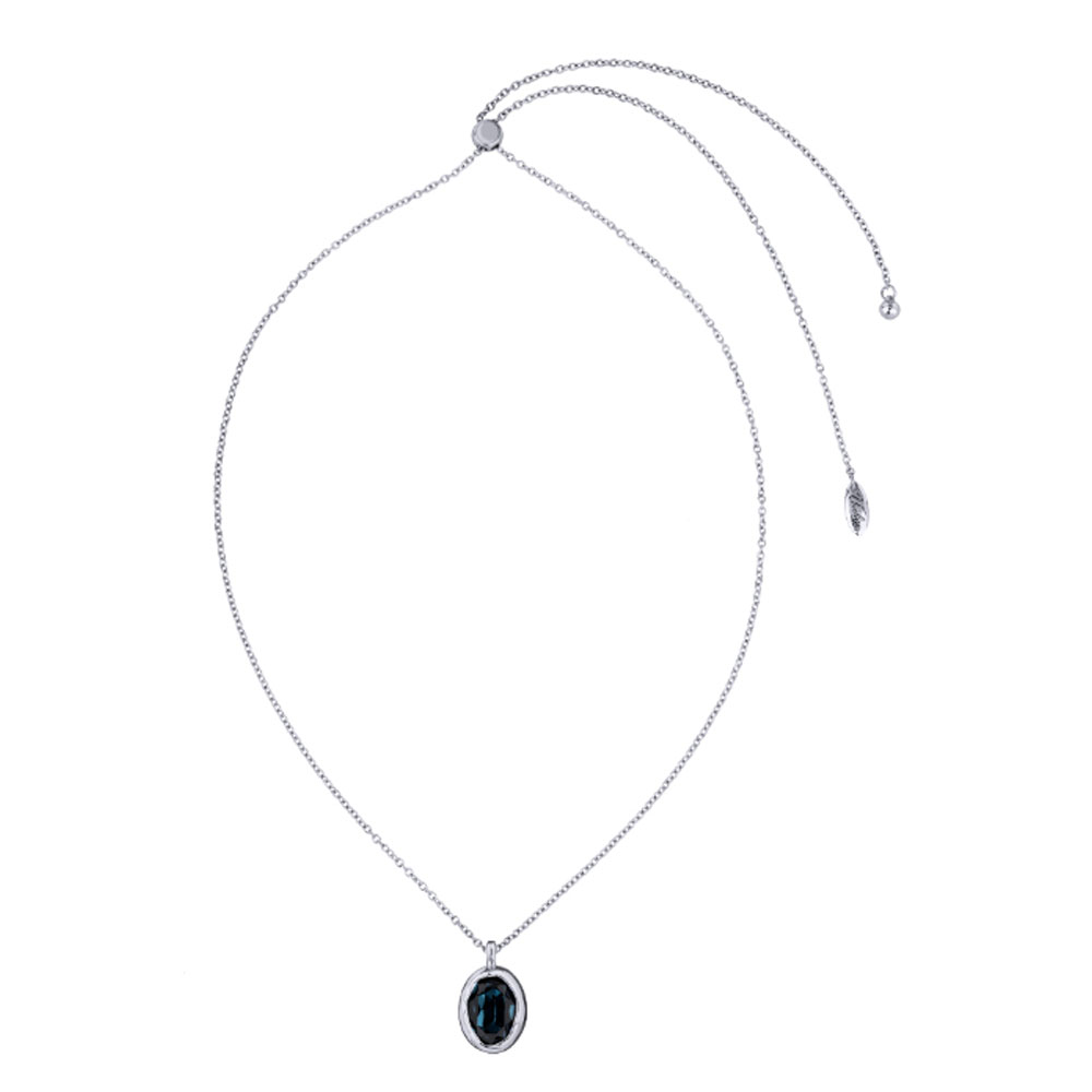 Описание: Изготовлено из ювелирного сплава на основе латуни с гальваническим покрытием родием. Изделие украшают кристаллы SW темно-синего цвета. На цепочке установлен бегунок регулировки длины. Максимальная длина 80см.