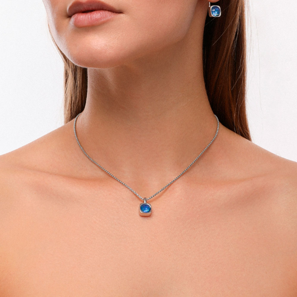 Описание: Изготовлено из ювелирного сплава на основе латуни с гальваническим покрытием родием. Изделие украшают кристаллы SW королевского синего цвета диаметром 8мм. Размер кулона 1.5х1см. На цепочке установлен бегунок регулировки длины. Максимальная длина 70см.