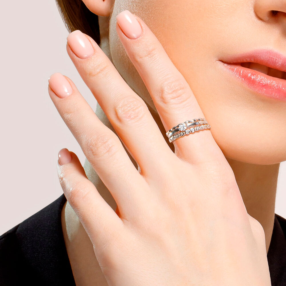 Изделие состоит из трёх сочетающихся между собой колечек, они не соединены между собой, поэтому вы можете надевать их в любом порядке и даже носить их отдельно друг от друга.