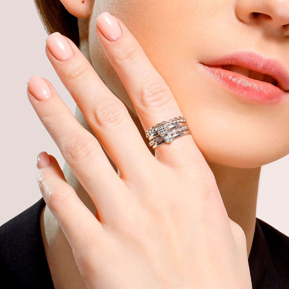 Украшение состоит из пяти отдельных колец, которые дают вам полную свободу выбора. Вы можете носить их по одному или по нескольку, комбинировать, менять местами и создавать свои оригинальные сочетания.