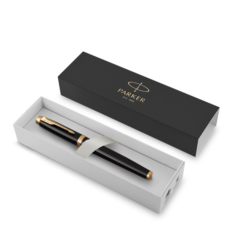Ручка-роллер IM Core со съемным колпачком. Корпус и колпачок из латуни, покрыт глянцевым лаком черного цвета, превосходно сочетается позолоченными декоративными элементами.