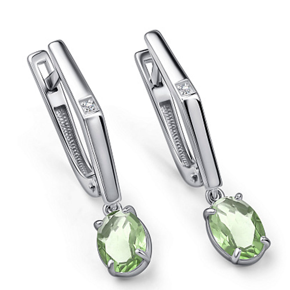 Серьги Алькор из серебра c бриллиантами и празиолитом 02-5024/0БРП-00