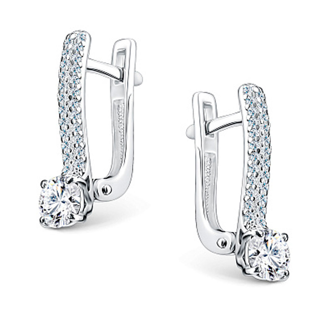 Материал: Серебро, Вставка: Фианит, Тип застёжки: Английская, Комплект: Пара серёг, Для кого: Для женщин