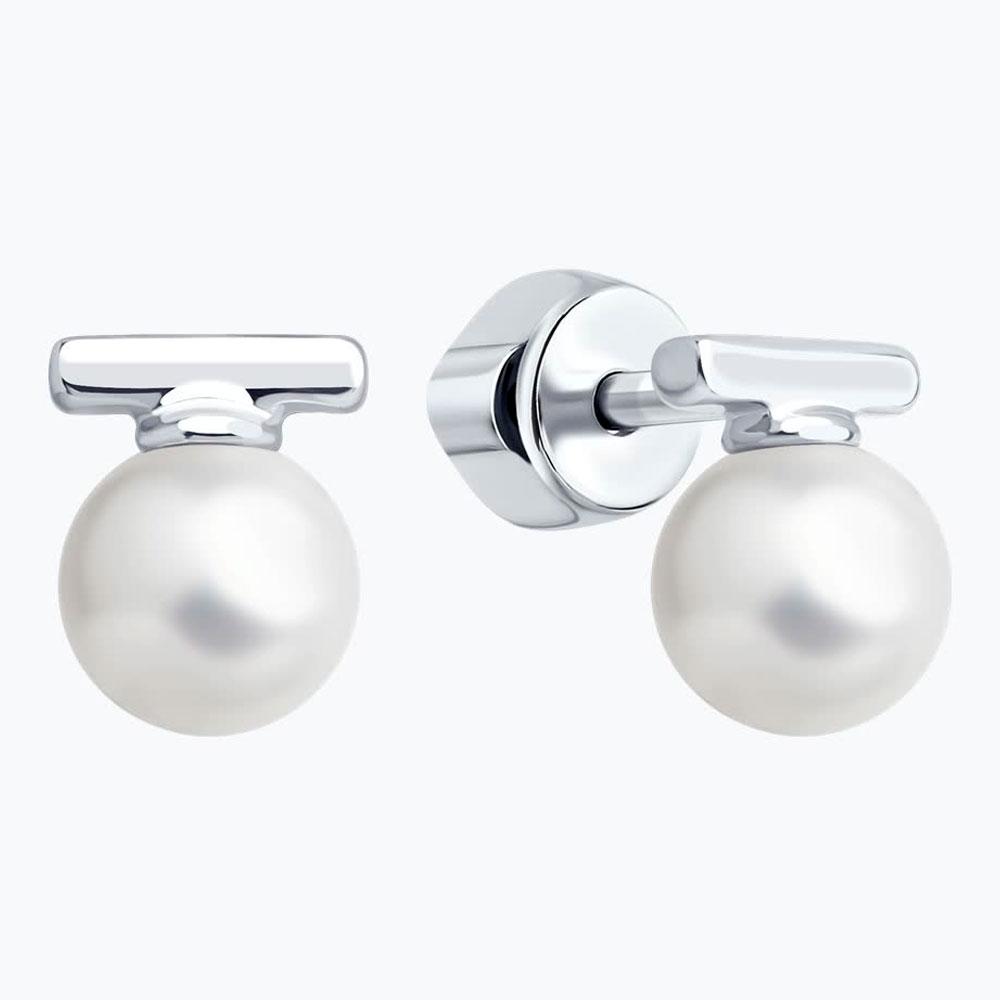 Материал: Серебро, Вставка: Жемчуг, Тип застёжки: Пусеты-гвоздики, Комплект: Пара серёг, Для кого: Для женщин