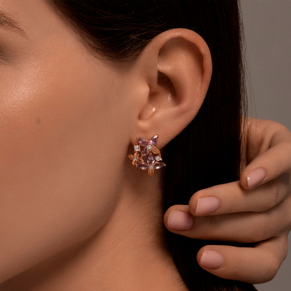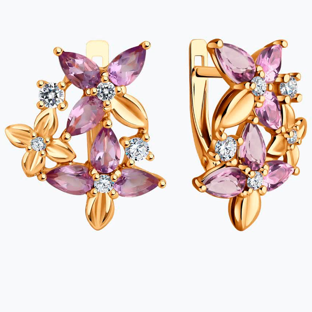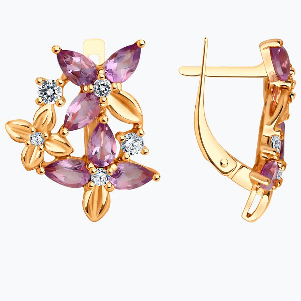 Серьги Diamant из золочёного серебра с аметистами и фианитами 93-320-02061-2