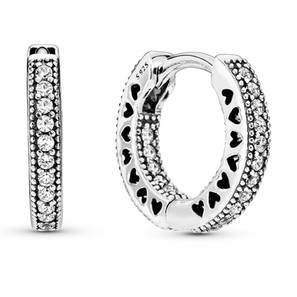 Классические серьги-кольца в современной интерпретации, украшены резными сердцами и сияющими камнями кубического циркония.