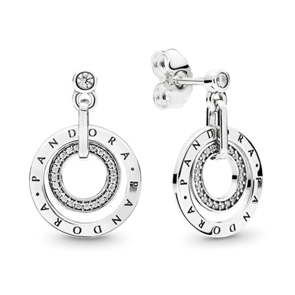 Серьги-подвески с логотипом PANDORA - это идеальное сочетание дизайнов, графическая надпись на внешнем круге сережек дополняет внутренний круг, инкрустированный кубическими циркониями.