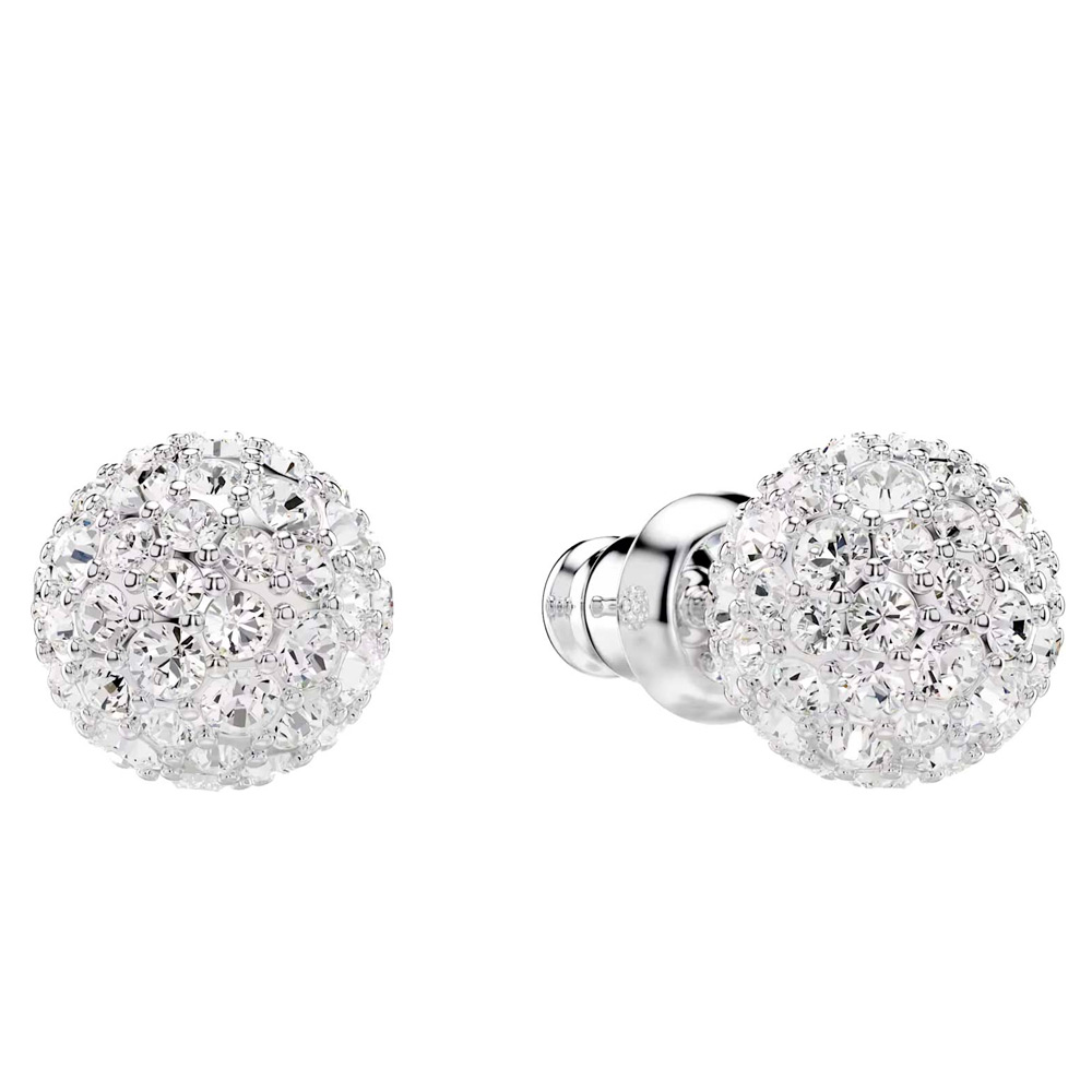 Эти замысловатые серьги Dextera подчеркивают прекрасное взаимодействие света и геометрии. Украшение представляет из себя сферы, которые дополнены паве из мерцающих прозрачных кристаллов. Уникальные сережки обязательно взбудоражат воображение. Штифтовый замок.
