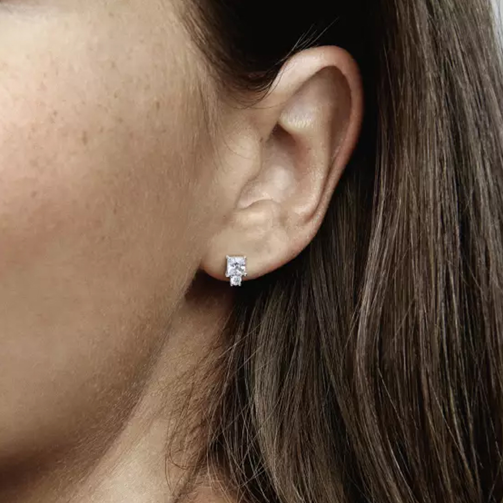 Лаконичные серьги-пусеты выполнены из стерлингового серебра и украшены камнями кубического циркония. Идеальная пара сережек на каждый день и для особого случая. Подойдут к любому образу и настроению.