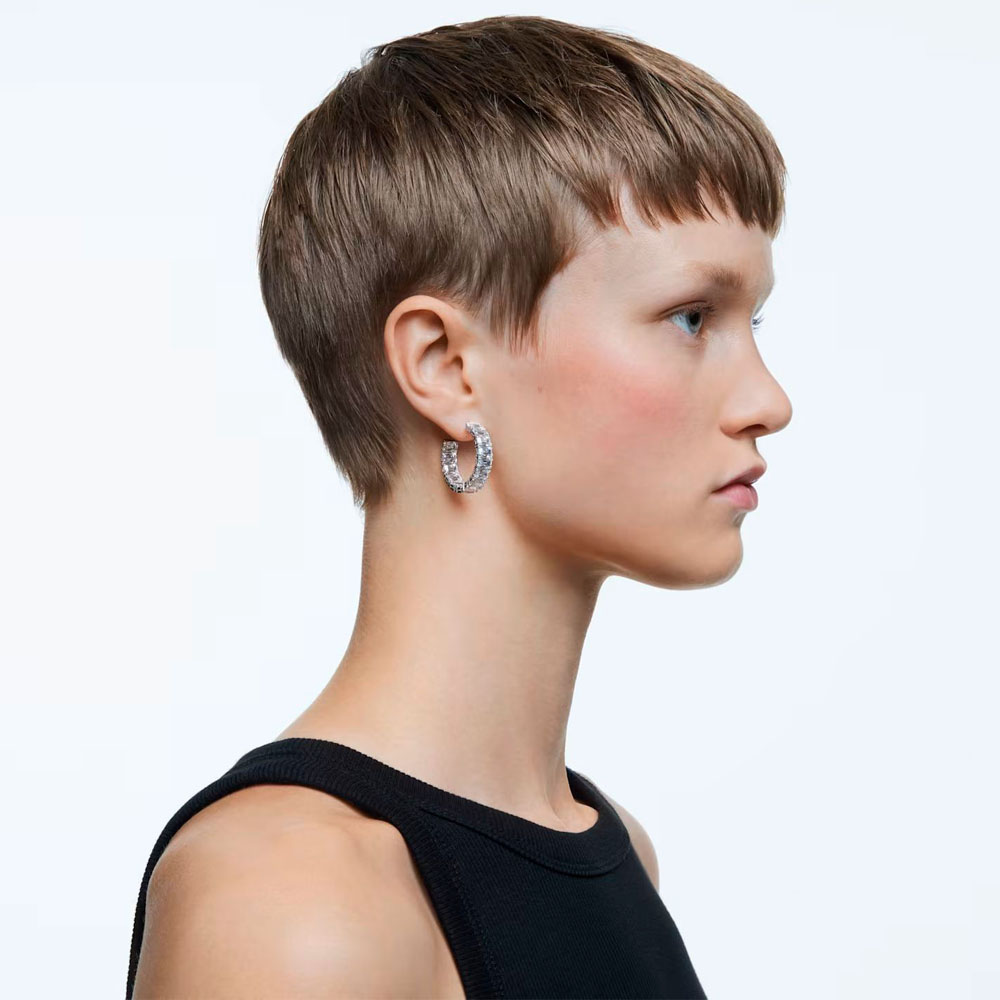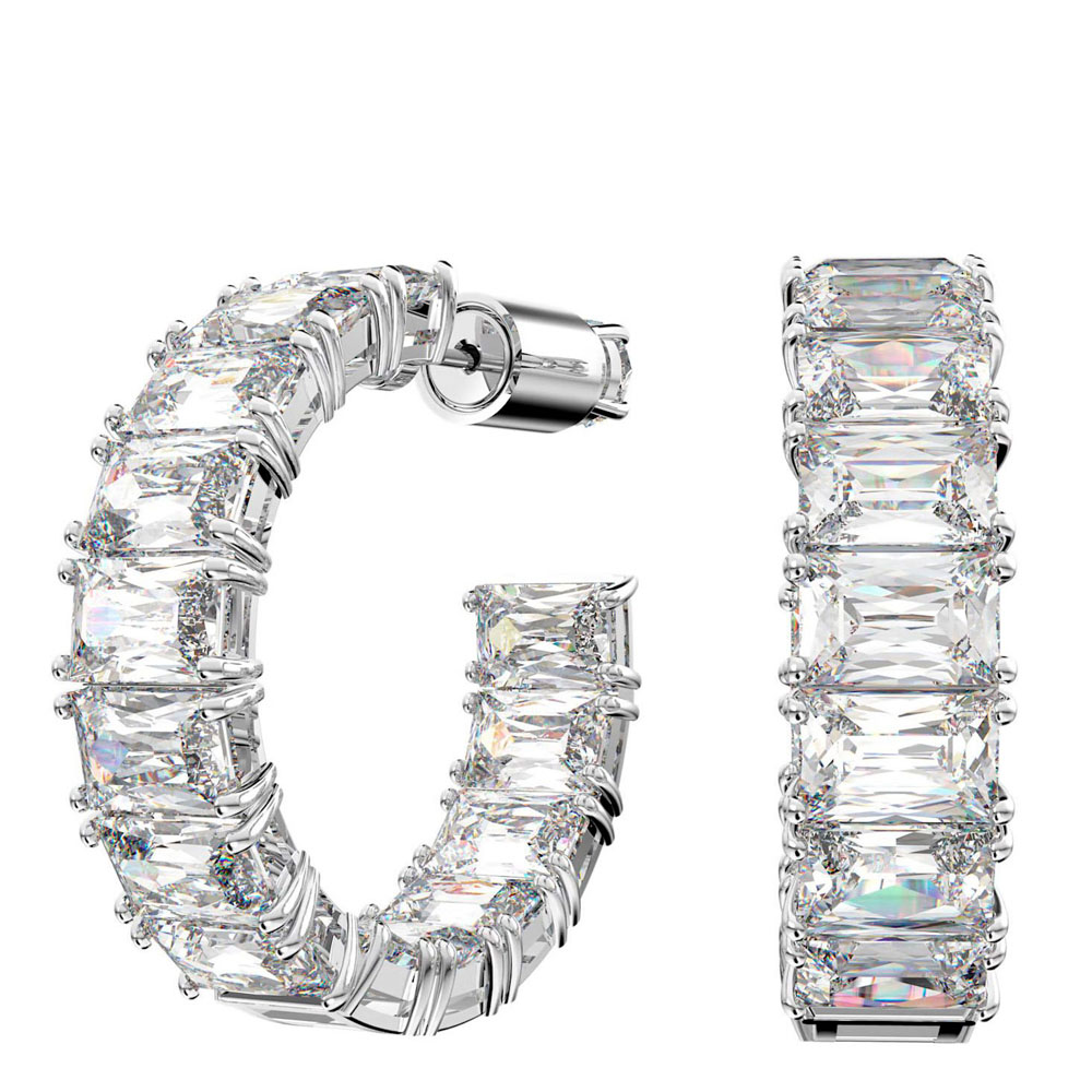 Элегантные серьги полукольца из коллекции Millenia с дорожкой из кристаллов восьмиугольной огранки, заключенных в изящную оправу с родиевым покрытием, добавят немного волшебства в ваш повседневный стиль. Вид застежки - штифт.