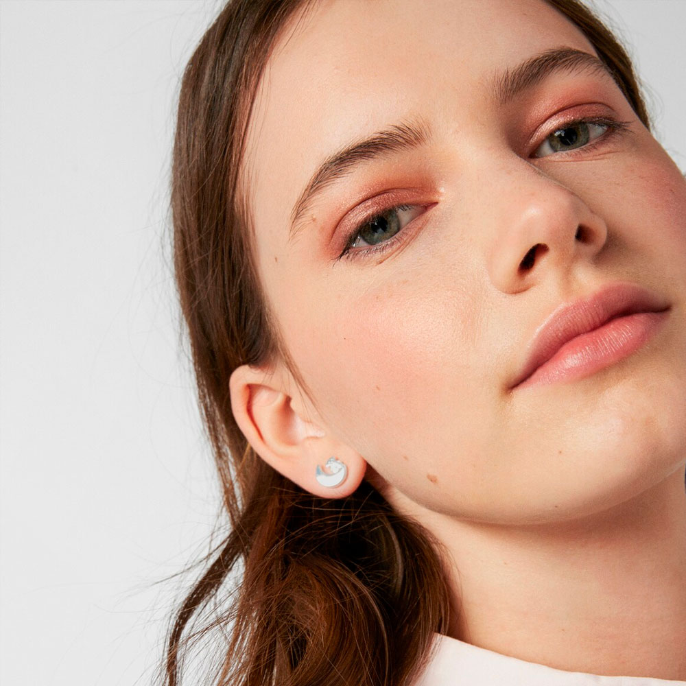 Серьги TOUS Nocturne из серебра высшей пробы. С фиксированным штифтом. Луна: 1 см. Медвежонок: 0,5 см.