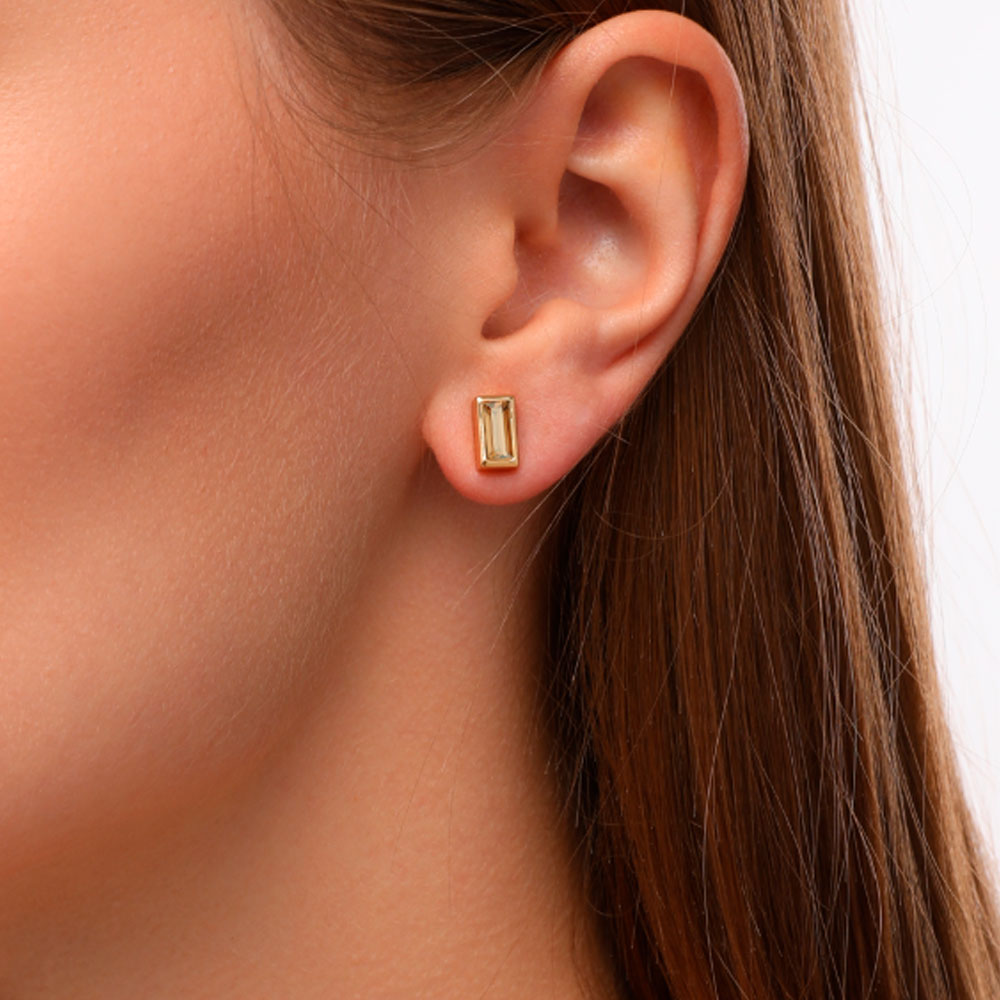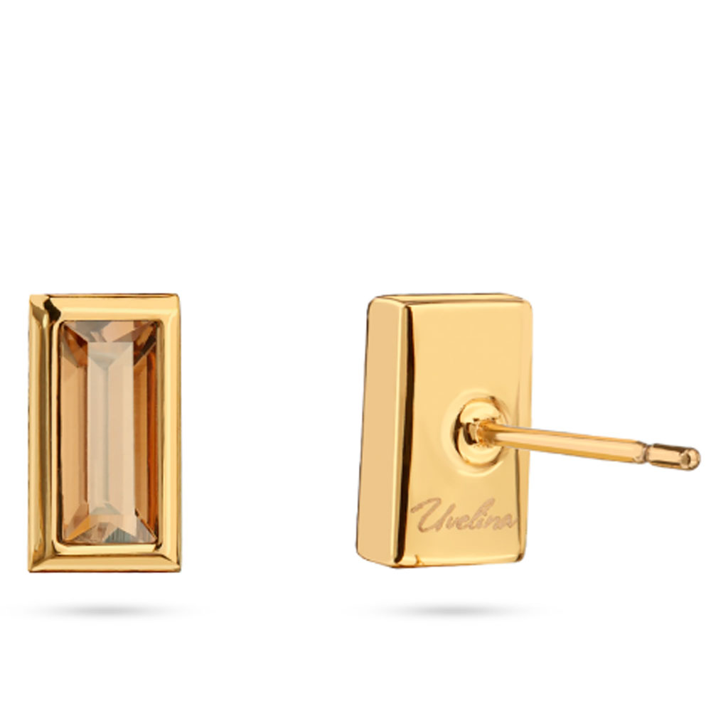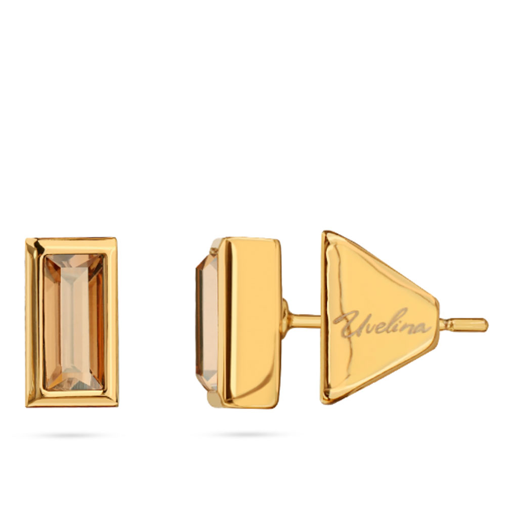 Описание: Изготовлено из ювелирного сплава на основе латуни с гальваническим покрытием золотом. Изделие украшают кристаллы SW цвета шампань. Размер серьги 9х5мм. Застежка-гвоздики.
