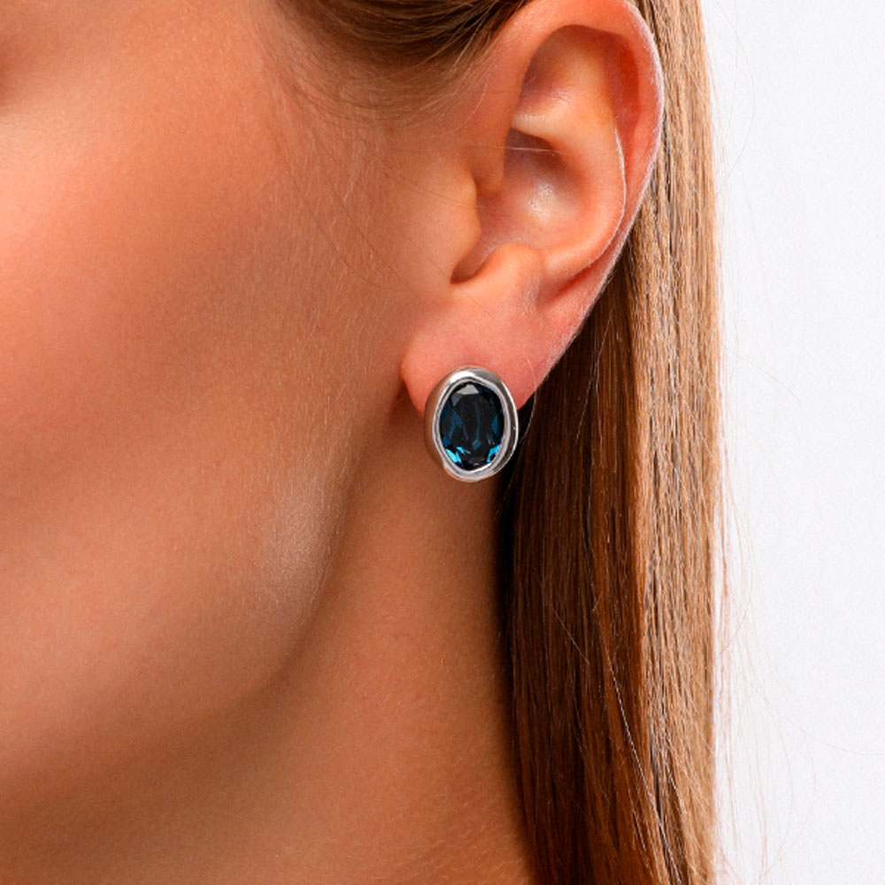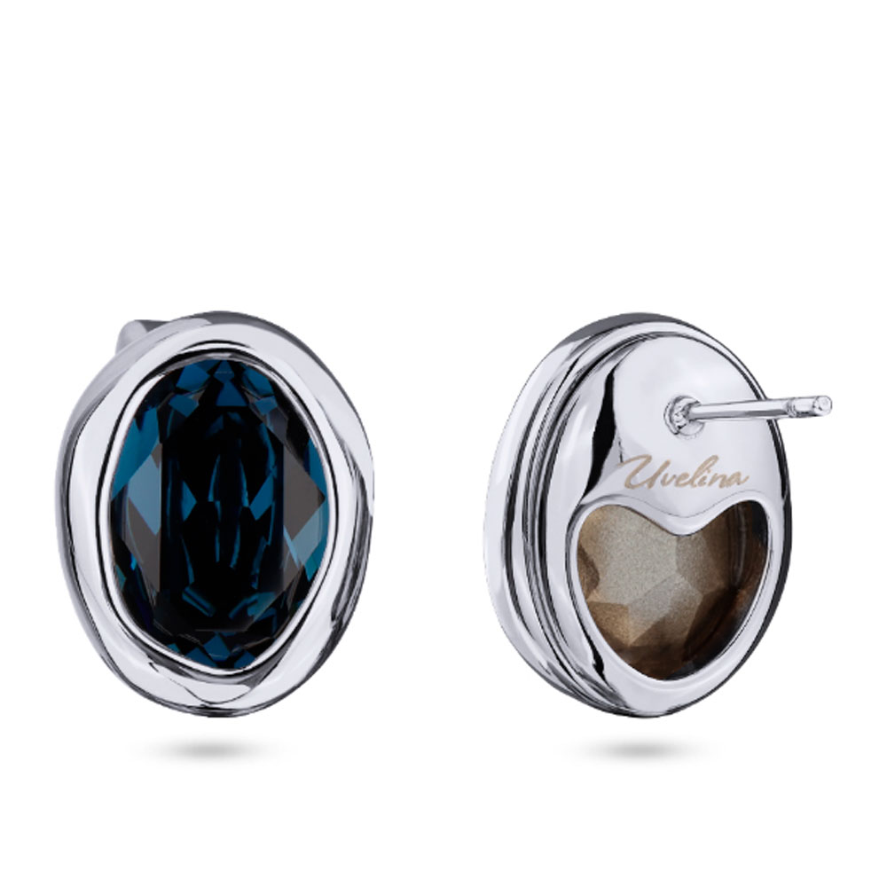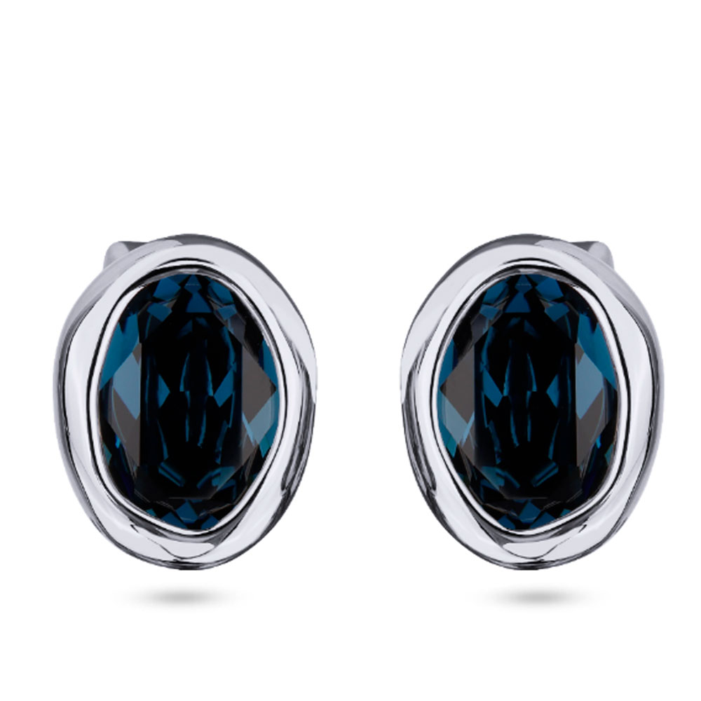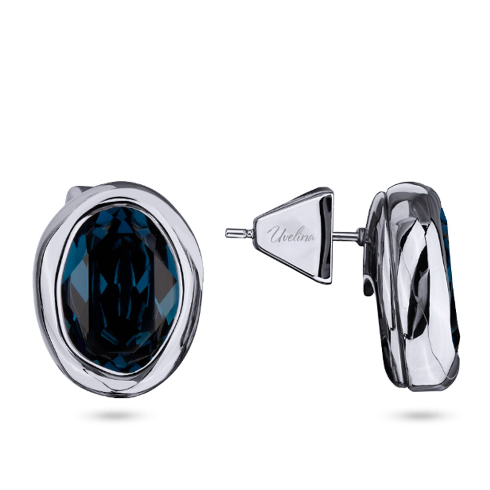 Описание: Изготовлено из ювелирного сплава на основе латуни с гальваническим покрытием родием. Изделие украшают кристаллы SW темно-синего цвета. Размер серьги 1.7х1.4см. Застежка-гвоздики.