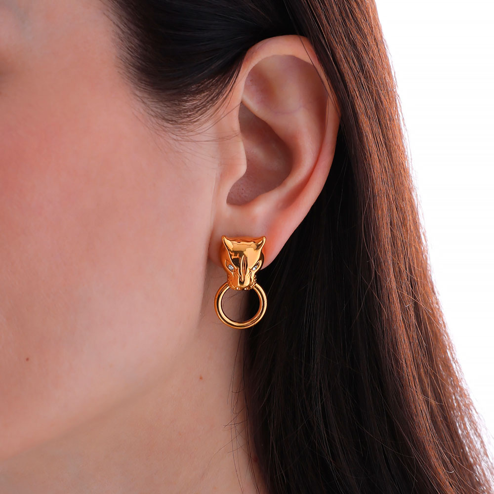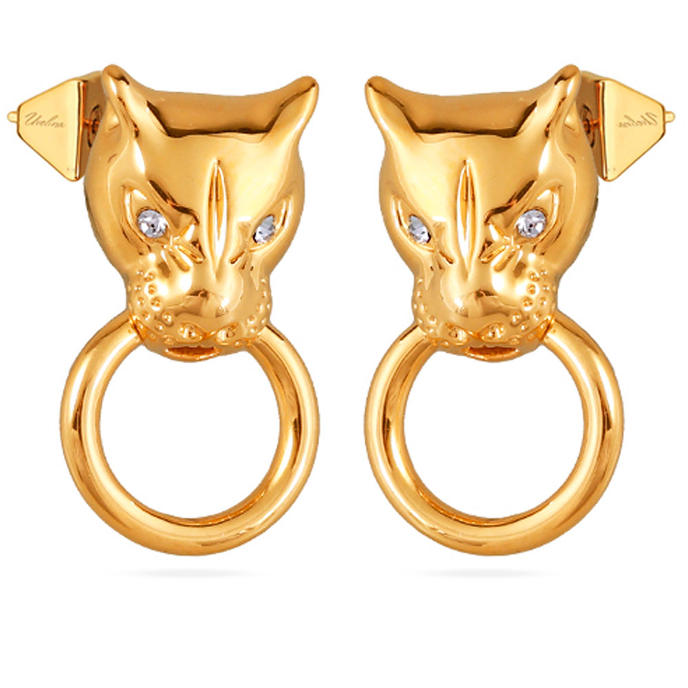 Описание: Изготовлено из ювелирного сплава на основе латуни с гальваническим покрытием золотом. Изделие украшают белые кристаллы SW. Размер украшения 2.5х1.5см. Застежка-гвоздики.