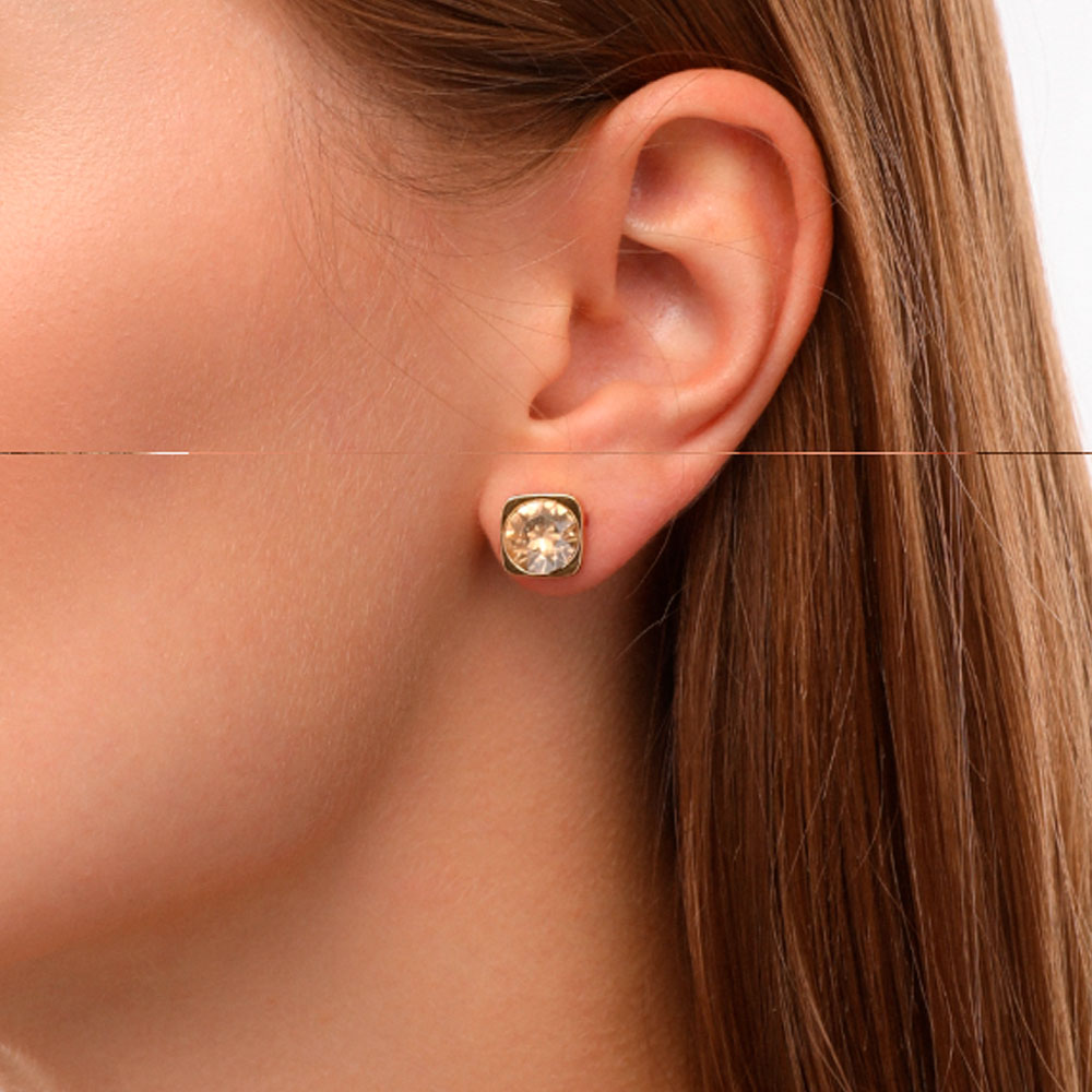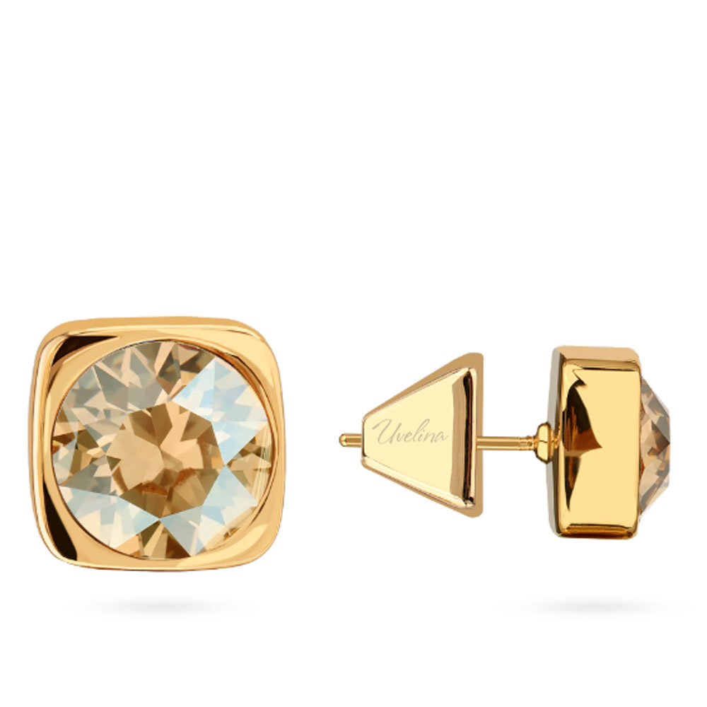 Описание: Изготовлено из ювелирного сплава на основе латуни с гальваническим покрытием золотом. Изделие украшают кристаллы SW цвета шампань диаметром 8мм.