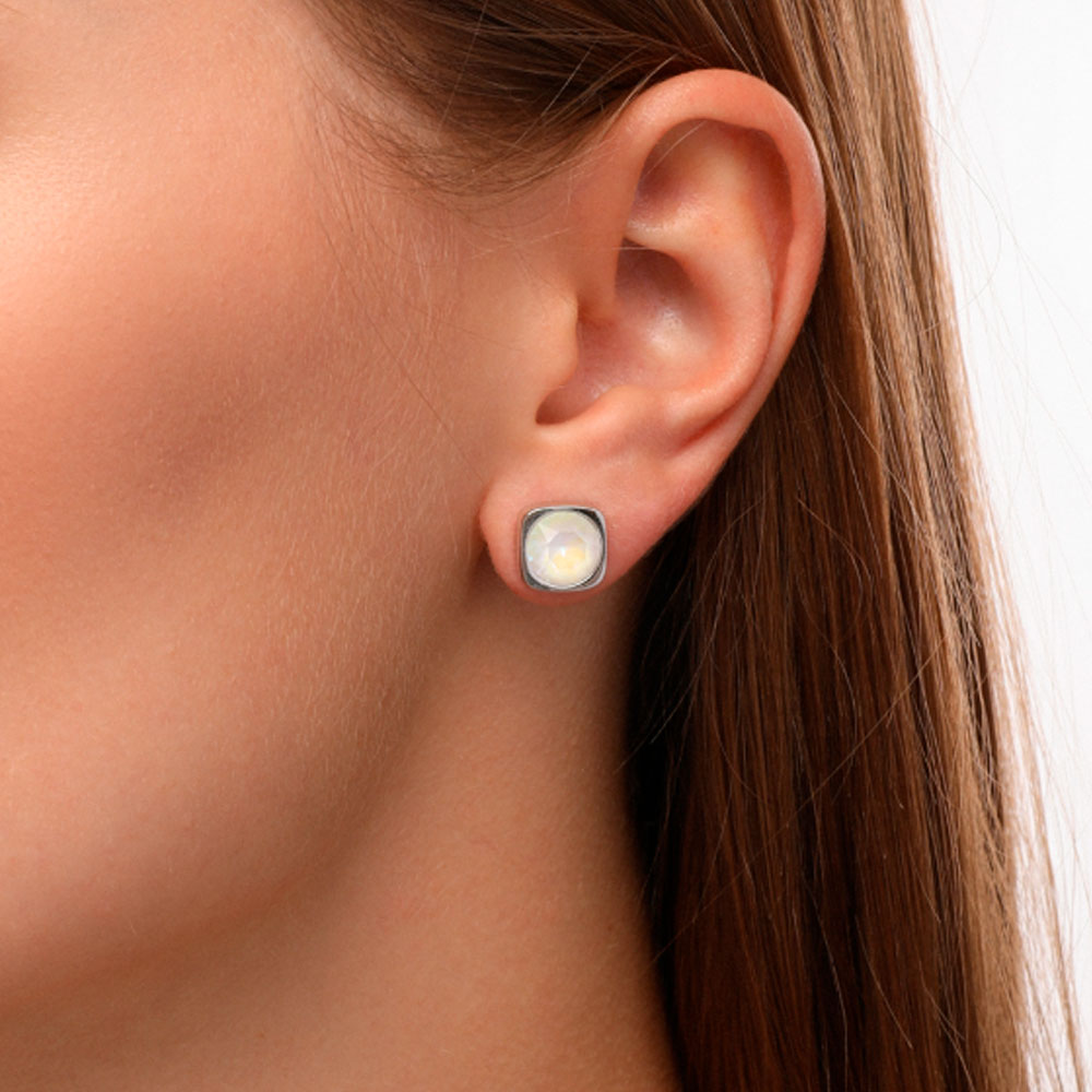 Описание: Изготовлено из ювелирного сплава на основе латуни с гальваническим покрытием родием. Изделие украшают кристаллы SW цвета белый опал хамелеон диаметром 8мм.