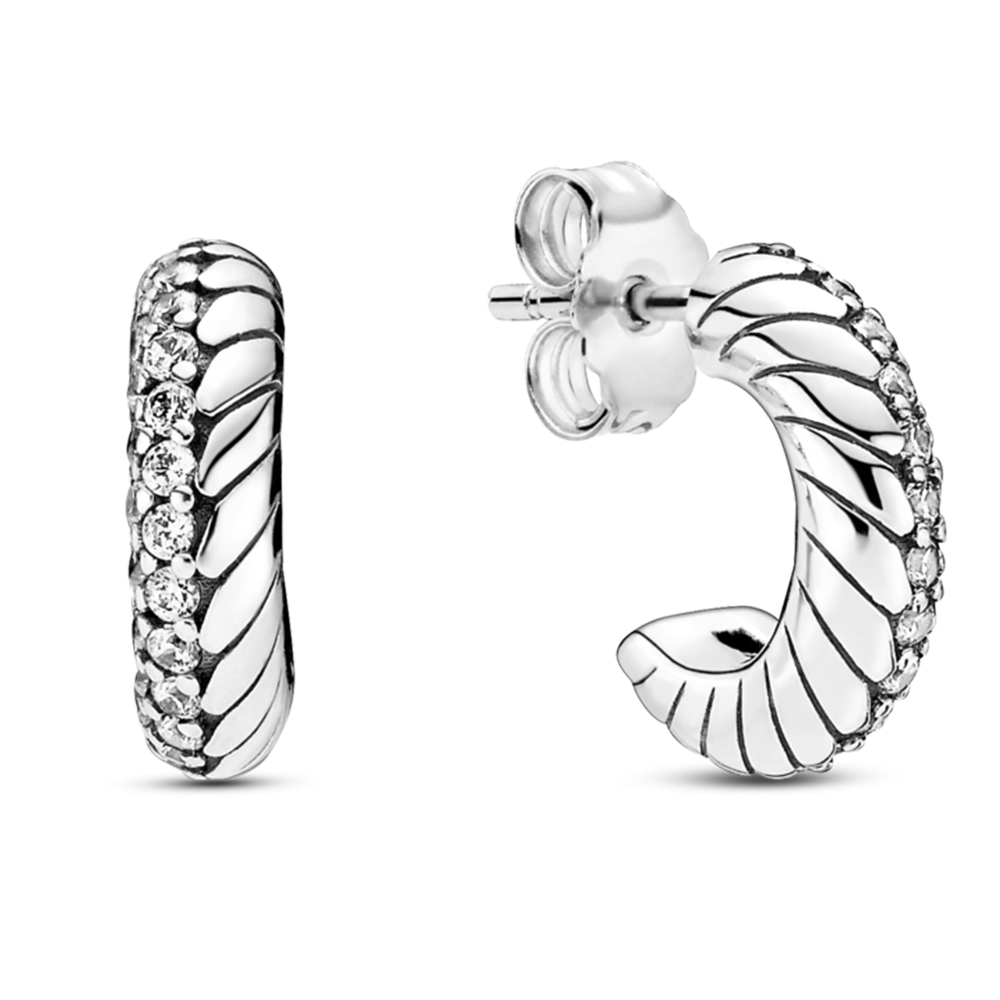 Серьги-кольца "Змейка Pandora"Две стороны серег-колец "Змейка Pandora" как две стороны личности: сияющая сторона из серебра 925 пробы сияет камнями кубического циркония в технике паве, а вторая сторона - словно змейка или мягкое плетение классического браслета Pandora Moments. Носите любой стороной под разное настроение. Pandora рассказывает истории через стиль в течение 20 лет. Юбилейная коллекция.