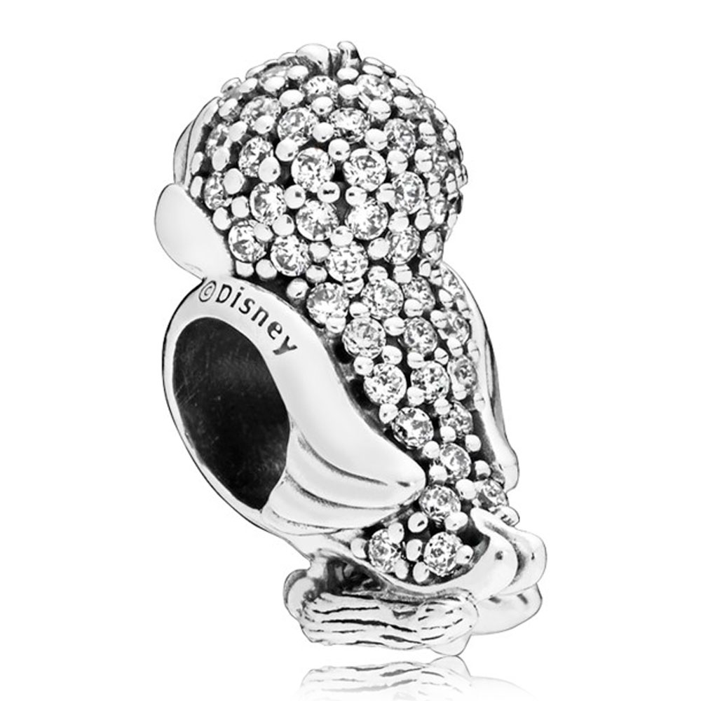 Шарм в форме птички Белоснежки DISNEY из серебра 925-й пробы с 62 прозрачными кубическими циркониями в корнеровой закрепке.