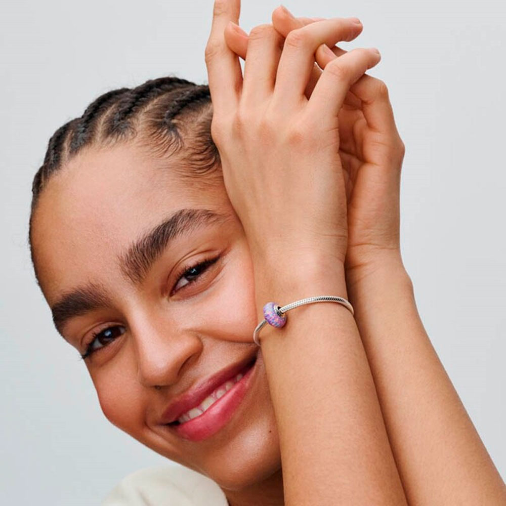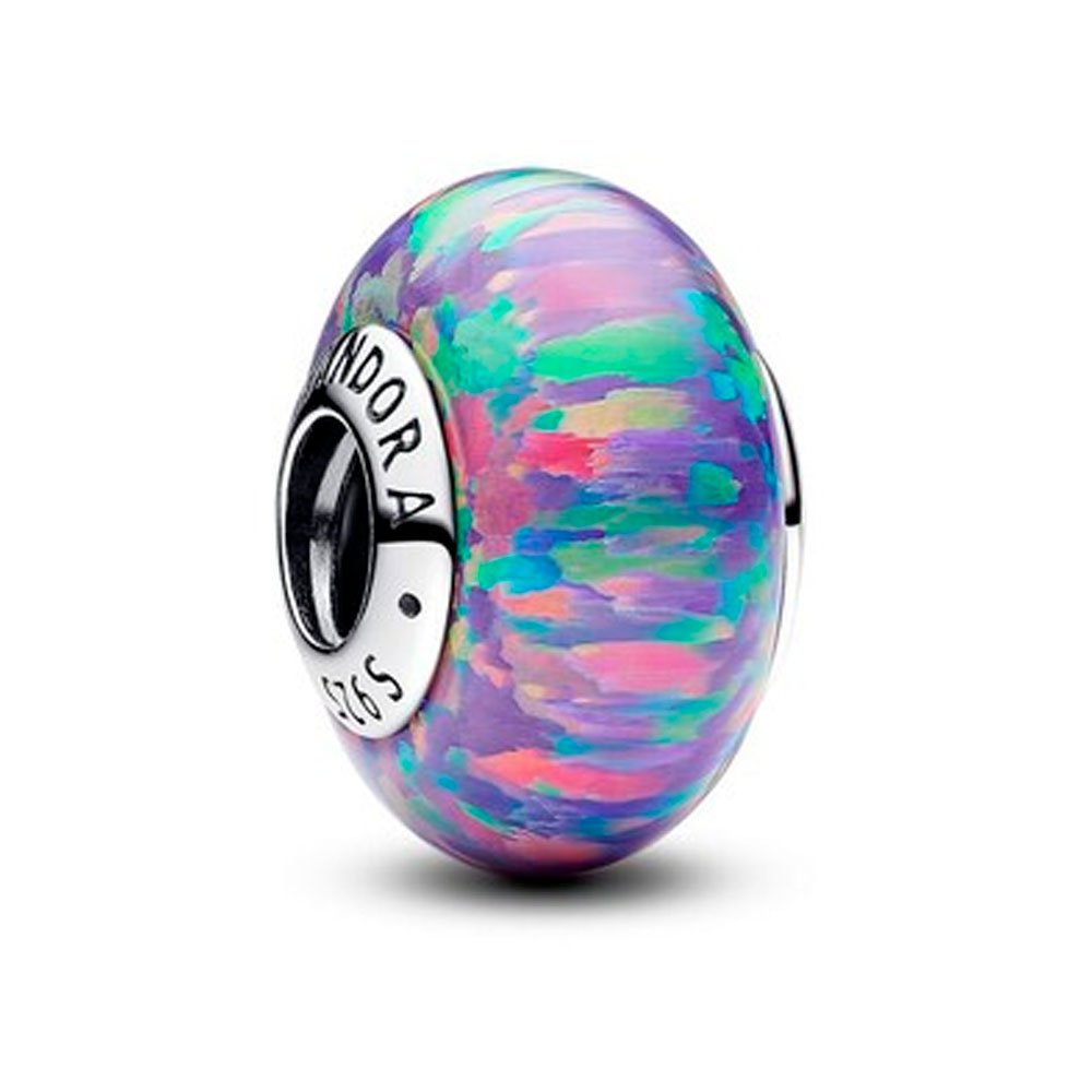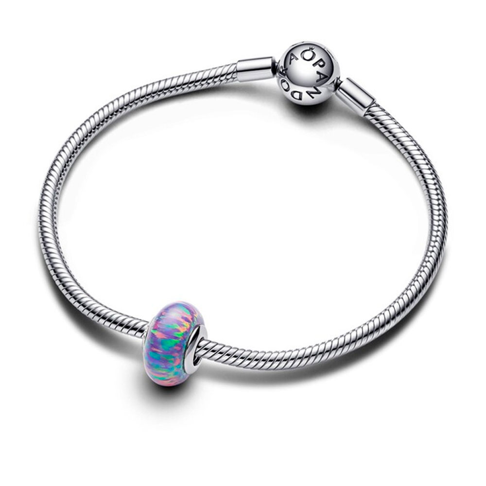 Создайте свой собственный миг всеохватывающего сияния любви с помощью шарма с пурпурным опалом. Выращенный в лаборатории опал имеет серебряную сердцевину и переливается всеми цветами радуги.