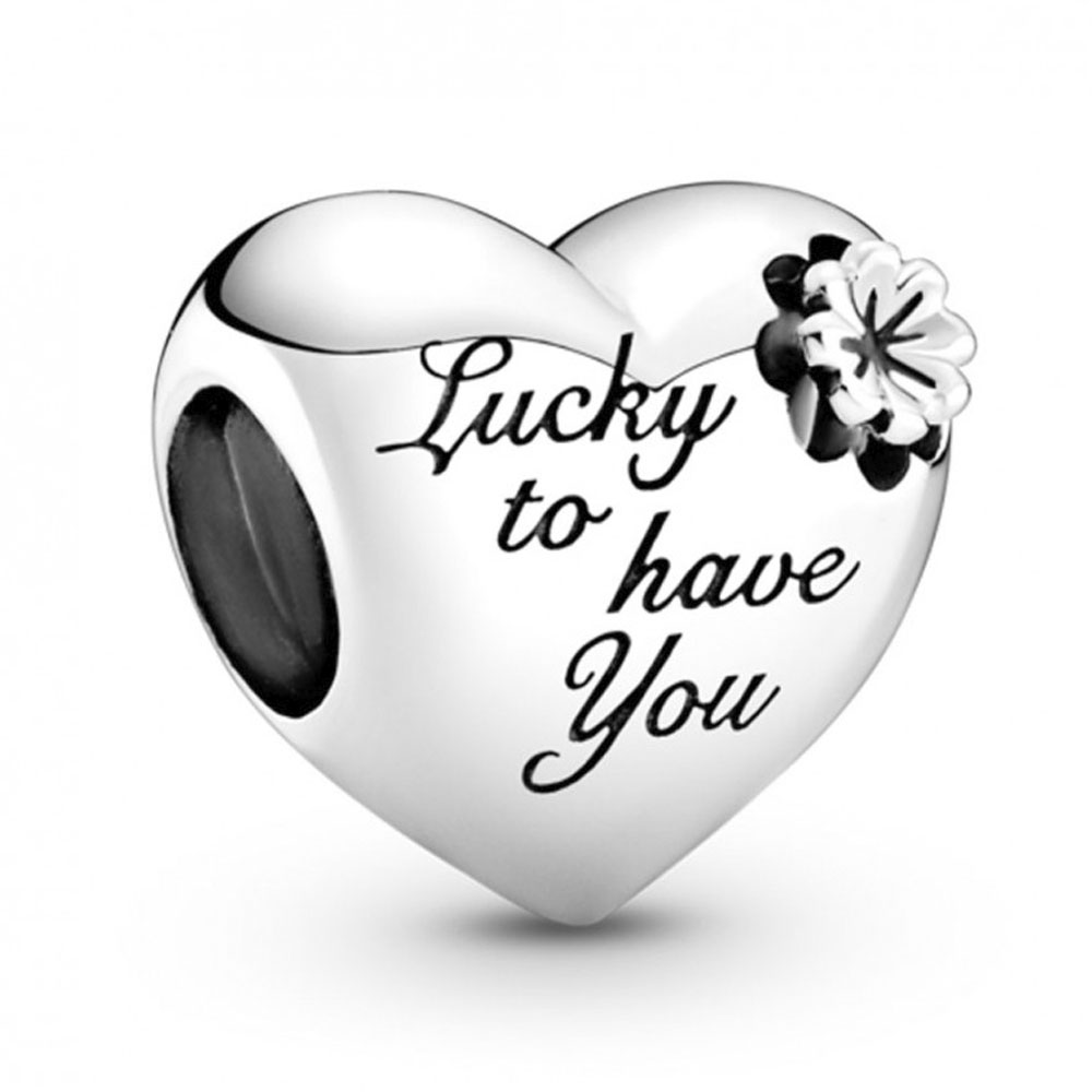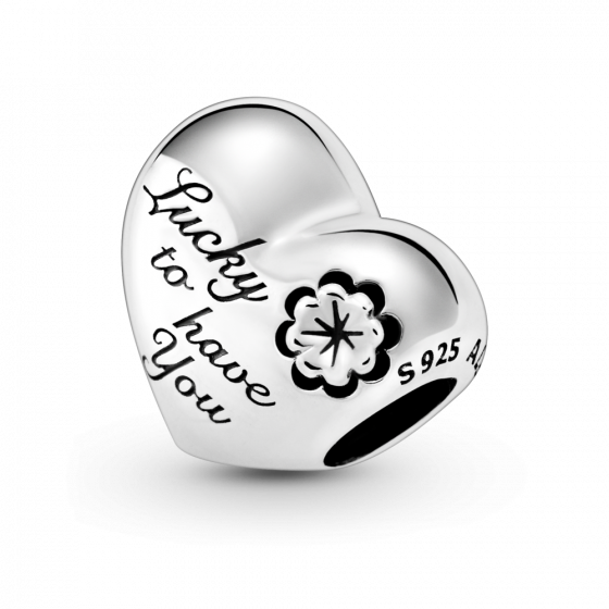 Шарм Moments "Лучшая мама" из серебра 925 пробы в форме сердца с объемным цветком клевера – символом удачи, украшен гравировкой “Lucky to have you” (Удача, что у меня есть ты) и “Mum” (Мама).