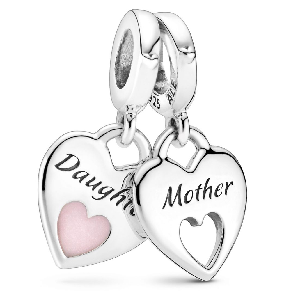 Шарм-подвеска Moments "Любимая мама и дочка" из серебра 925 пробы и розовой эмали