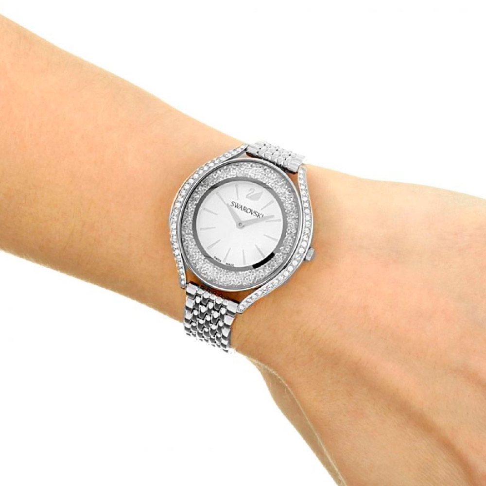 Обворожительный блеск кристаллов закружит вас в вихре стиля и безупречности. Crystalline Aura. Циферблат выполнен по технологии Sunray (солнечные лучи). Корпус украшен множеством кристаллов Swarovski. Стальной браслет.