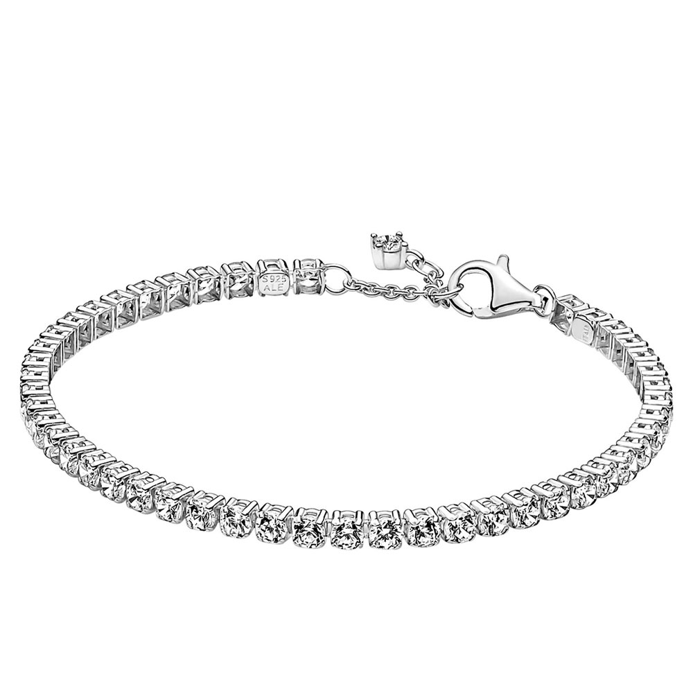 Сверкающий теннисный браслет из стерлингового серебра из коллекции Pandora Timeless с дорожкой из фианитов - классическое украшение на все времена. Регулируемая длина. Застежка - карабин.