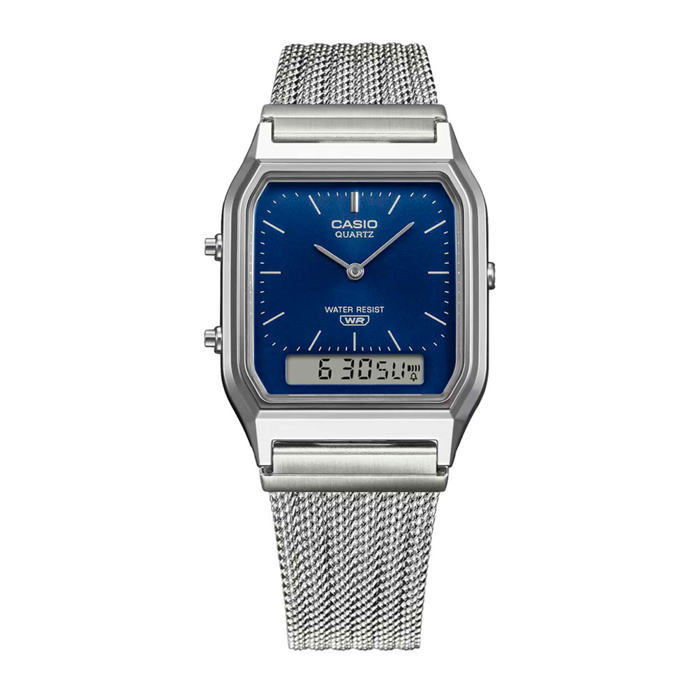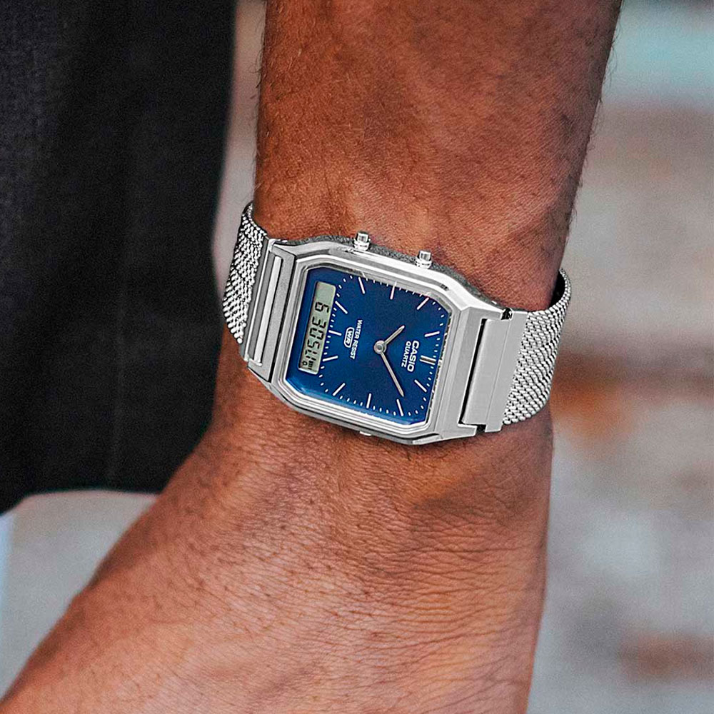 Casio AQ-230EM-2A — это элегантные часы в стиле Vintage, сочетающие функциональность и ретроэстетику. Если вы хотите купить часы Casio Vintage с миланским браслетом и аналогово-цифровой индикацией, эта модель станет стильным и практичным выбором.