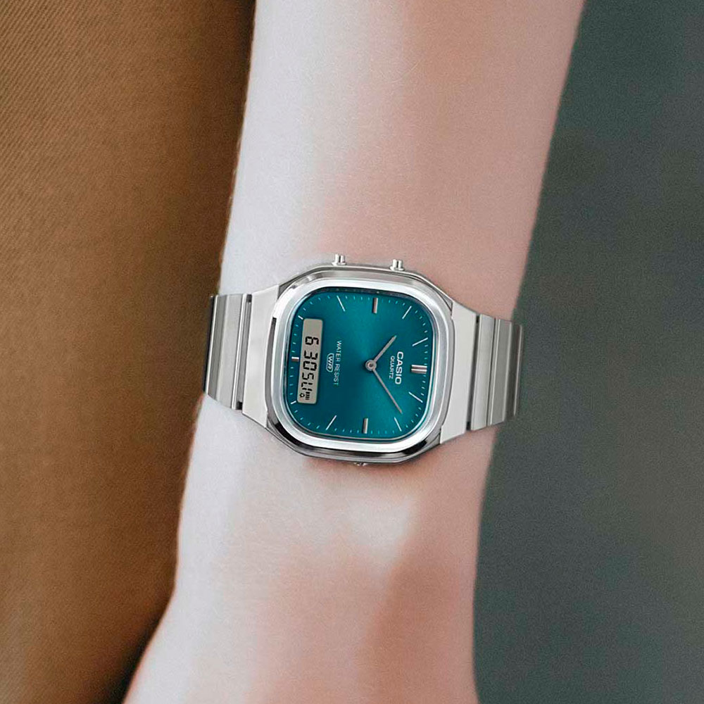 Аккуратные часы Casio Vintage Casio AQ-240E-3A со стальным браслетом будут одинаково хорошо смотреться как со строгим костюмом, так и с повседневной одеждой. Коллекция Vintage. Унисекс часы. Точность хода обеспечивает кварцевый механизм (±30 секунд в месяц). Второй часовой пояс. 12-ти и 24-х часовой формат времени. Точный секундомер с измерением до 1/100 секунды и функцией SPLIT-хронографа, позволяющей отдельно фиксировать время параллельных событий. Циферблат с метками в виде штрихов выполнен по технологии Sunray (солнечные лучи). Примерный срок службы батареи: 3 года. Браслет с регулируемой застежкой. Класс водозащиты 30 метров (3 АТМ/bar): минимальная защита от мелких брызг. Часы не предназначены для погружения в воду.