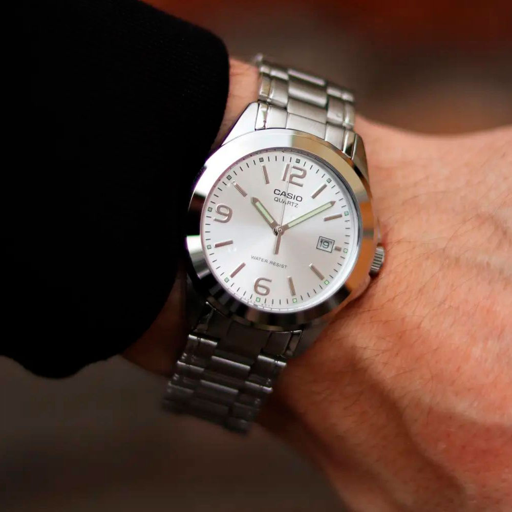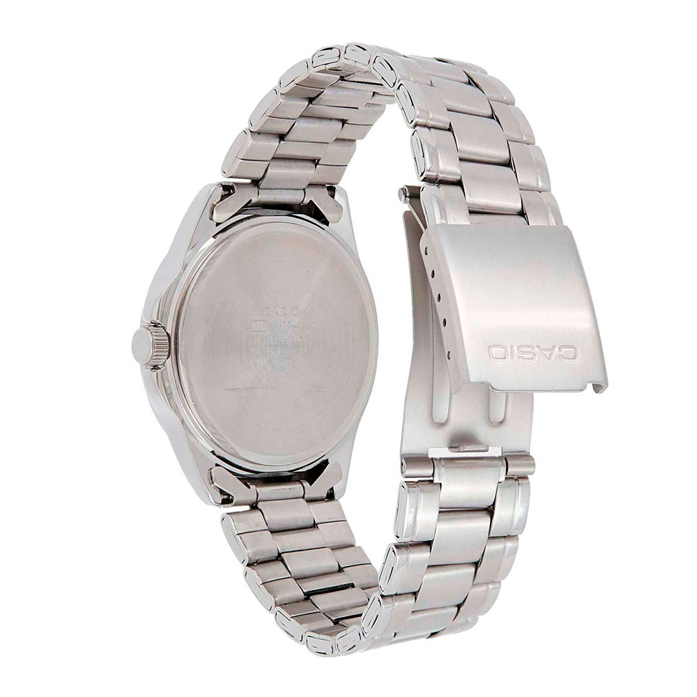 Сдержанные часы от Casio будут идеальным аксессуаром, дополняющим ваш повседневный образ. Standard. Мужские часы с круглым корпусом. Циферблат с метками в виде штрихов и арабских цифр выполнен по технологии Sunray (солнечные лучи). Окошко даты находится в положении 3 часа. Заводная головка с защитой. Браслет с тройной раскладывающейся застежкой.