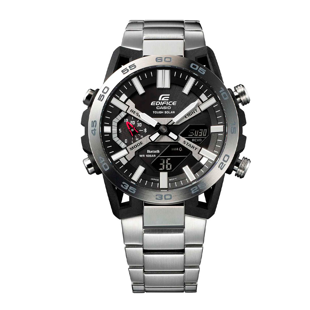 Мужские наручные часы Casio Edifice ECB-2000D-1A. Точный кварцевый механизм с аналого-цифровой индикацией. Корпус изготовлен из высококачественной нержавеющей стали 316L с высокими антикоррозийными свойствами. Светодиодная подсветка. На циферблате отображается текущее число, месяц и день недели. Ударопрочная конструкция часов защищает от ударов и вибрации. Солнечная батарейка. Солнечная подзаряжающаяся батарейка обеспечивает питание часов для работы. Функция Bluetooth позволяет удобно отображать все метрики с часов на экране смартфона, а также выводить на часы уведомления о входящих звонках, сообщениях и имейлах. Функция хронографа. Функция таймера. Таймеры обратного отсчета напомнят Вам о текущих или особенных событиях, издав звуковой сигнал в установленное время. Функция будильника. Индикатор запаса хода. Отображение текущего времени в основных городах и конкретных областях по всему миру. После настройки автоматический календарь всегда отображает точную дату. Отображение времени возможно в 12-часовом или 24-часовом формате. Браслет из нержавеющей стали. Прочное, устойчивое к царапинам минеральное стекло защищает часы от повреждений. Часы являются водонепроницаемыми до 10 Бар. Цвет корпуса: Серый. Цвет циферблата: Серый. Ширина (с заводной головкой): 51мм. Толщина: 11мм. Другие наименования модели: ECB-2000D-1ADF, ECB-2000D-1AEF.