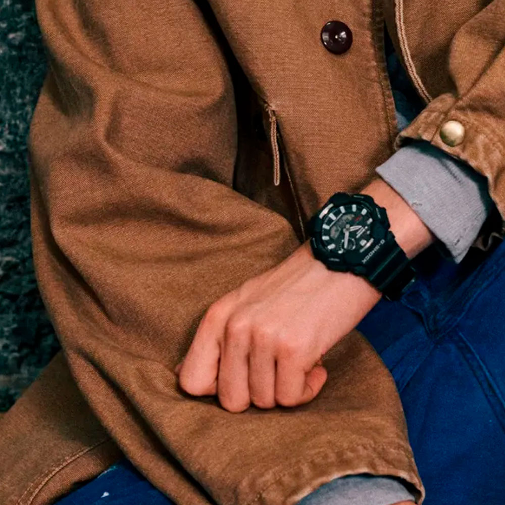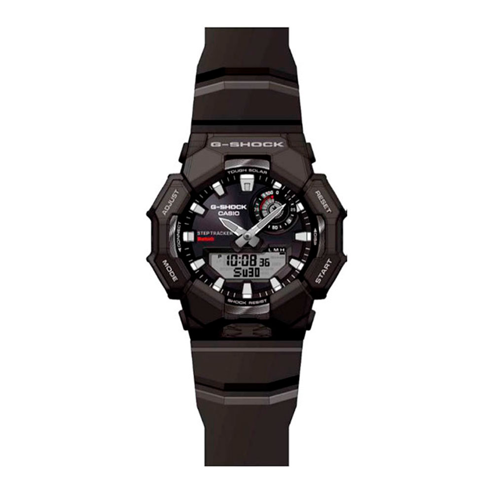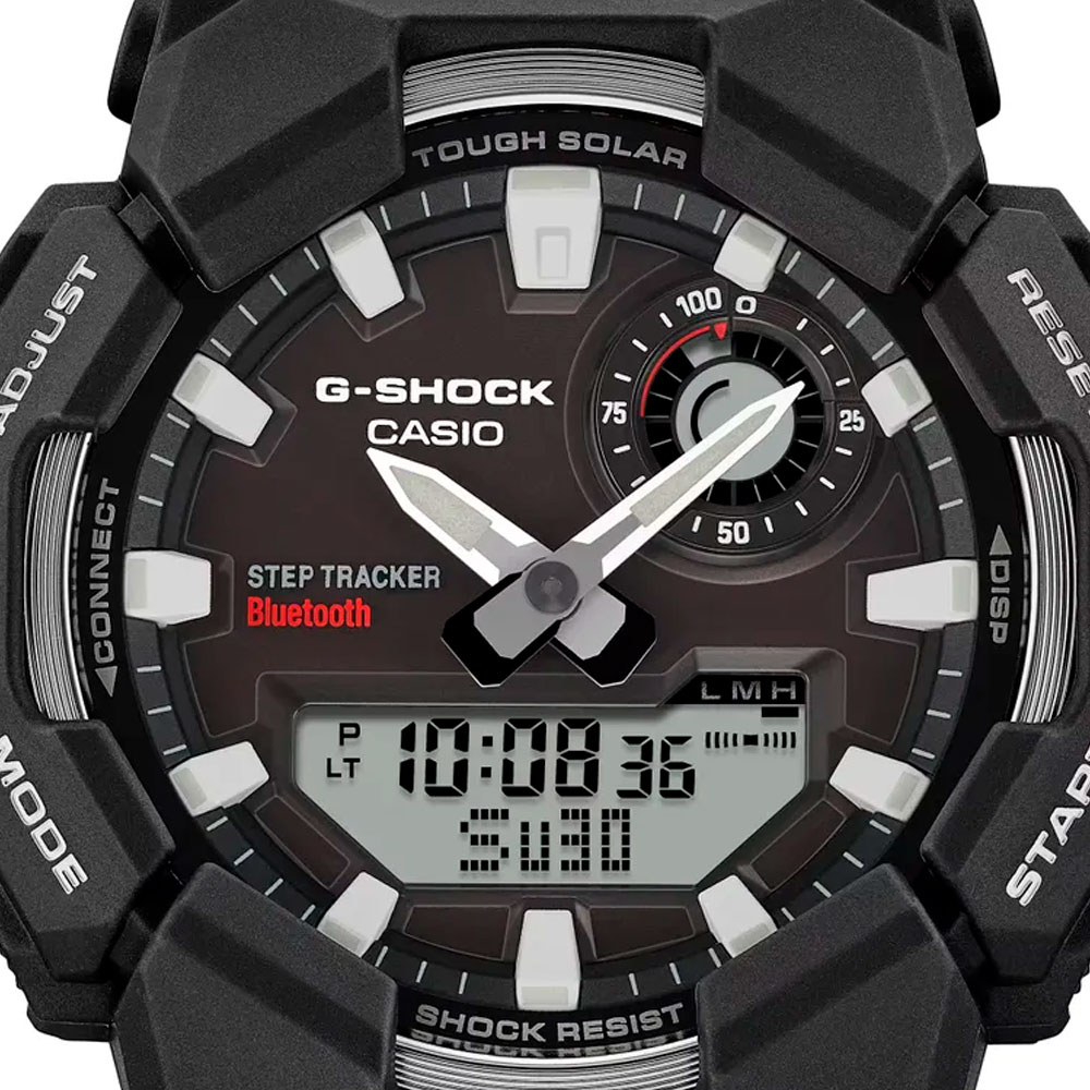 Модель второй половины 2025 года из серии G-SHOCK GA-B010 в брутальном черном корпусе с эргономичным аналого-цифровым циферблатом, защищенным прочным минеральным стеклом. Часы серии GA-B010 получили харизматичный агрессивный внешний вид и технологию Carbon Core Guard: модуль часов защищает 2 слоя корпуса, внешний полимерный и внутренний легкий и сверхпрочный с углеродным армированием. Функция шагомера поможет отслеживать дневную активность, а с помощью блютус часы способны синхронизироваться с вашим смартфоном и дополнительно отображать все метрики дневной активности в приложении CASIO WATCHES на смартфоне в максимально удобном и наглядном виде. Работают часы от солнечного или искусственного света благодаря солнечной батарее (она же технология Tough Solar). Не стоит забывать про привычные для для джишоков ударопрочность, водозащиту в 200 метров, отображение дней недели на русском языке и еще более десятка часовых функций.