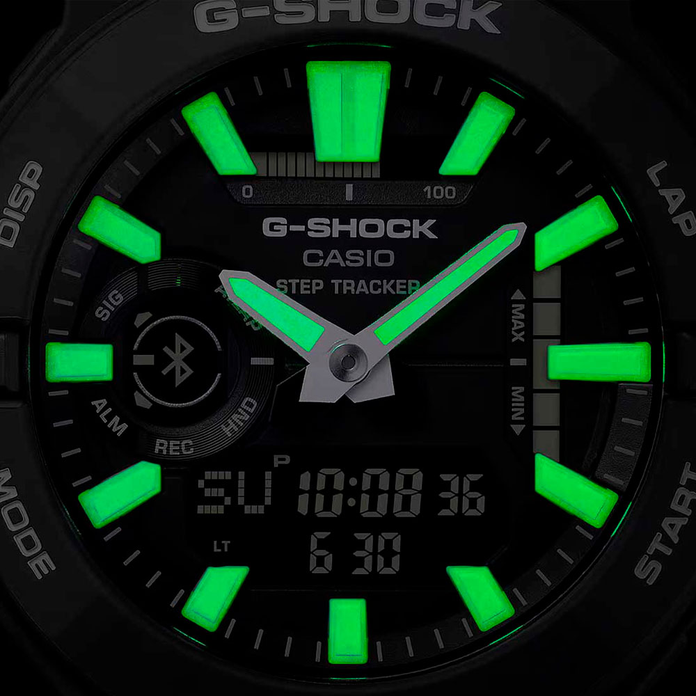 Двойная подcветка: циферблат и ЖК-дисплеи подсвечиваются светодиодом, благодаря наличию функции задержки, после отпускания кнопки освещение горит еще несколько секунд. Настраиваемое послесвечение 1,5 или 3сек. Цвет подсветки: белый. Необритовое светонакопительное покрытие обеспечивает длительное послесвечение в темноте даже после кратковременного нахождения на свету